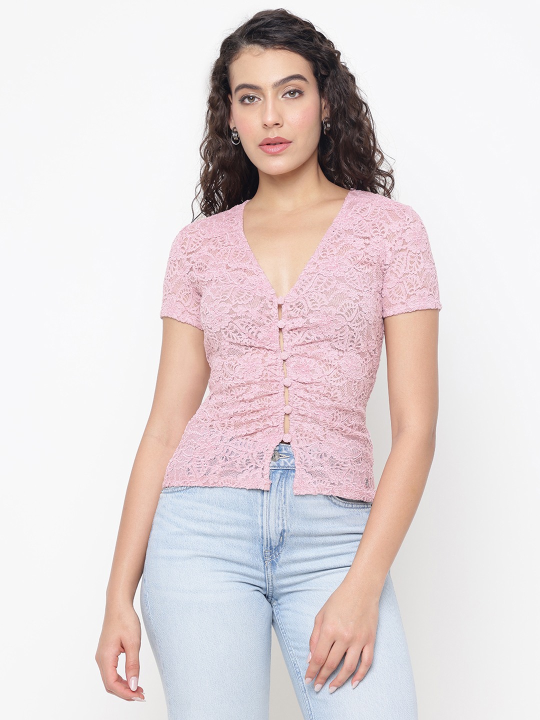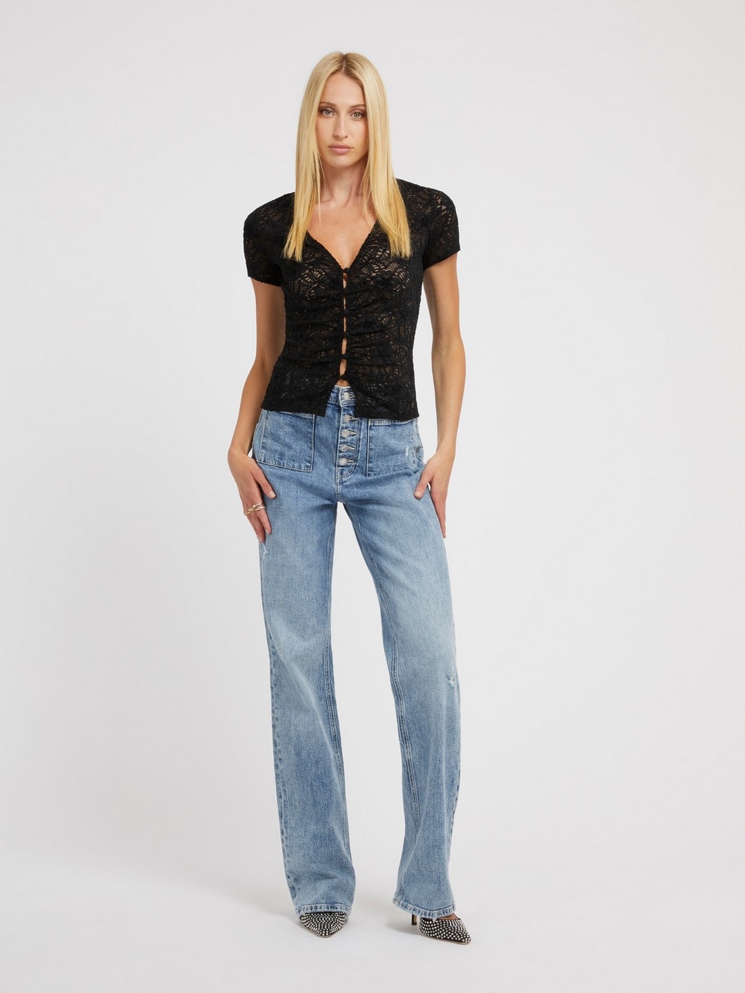 Black Embroidered V-Neck Short Sleeves Leila Lace Top