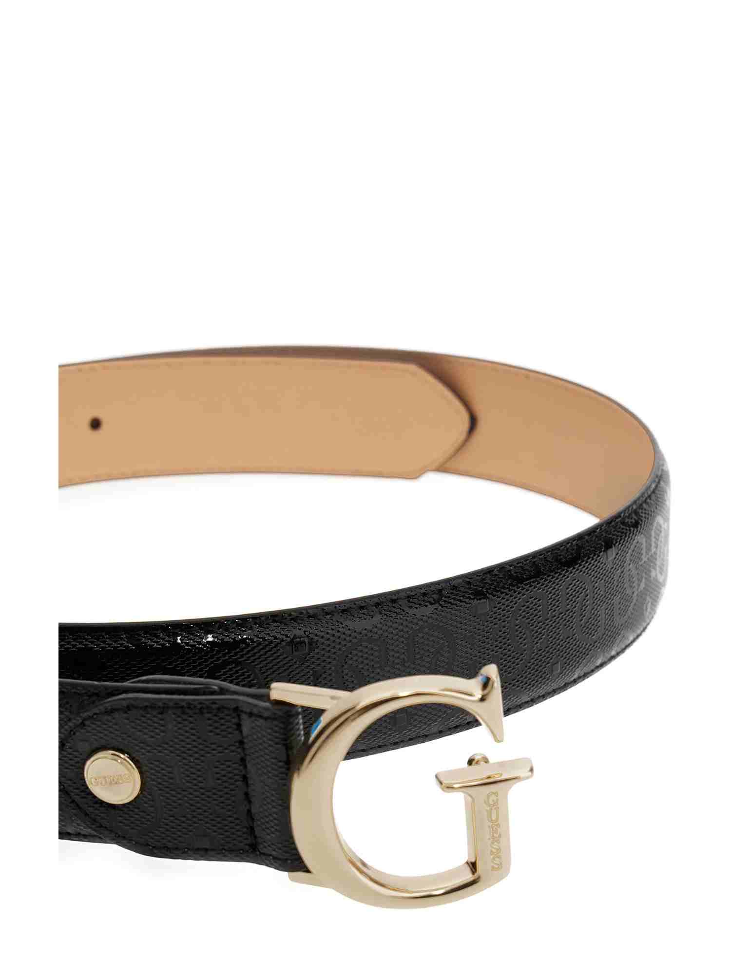 Elevate your style with the Guess Black Polyester Logo Women Belt. Crafted with high-quality polyester material, this sleek and versatile belt features the iconic Guess logo for a touch of designer flair. Whether you're dressing up for a night out or adding a chic touch to your everyday look, this belt is the perfect accessory to accentuate your waist and elevate any outfit. Stay on-trend and make a statement with the Guess Black Polyester Logo Women Belt.