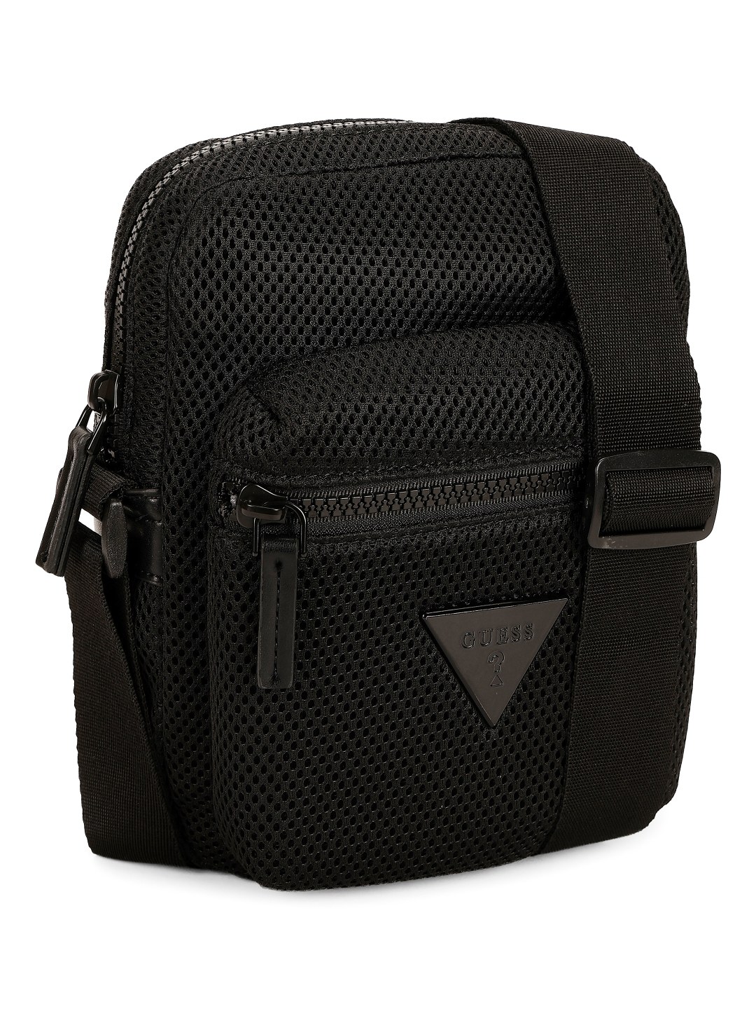 Elevate your style with the Guess Black Polyester Solid MEN Cross Body bag. This sleek and versatile accessory is designed for the modern man on the go. Made from durable polyester, this cross body bag is perfect for keeping your essentials close at hand while maintaining a trendy look. The adjustable strap ensures a comfortable fit, while the solid black color adds a touch of sophistication to any outfit. Whether you are running errands or heading out for the night, this Guess cross body bag is the perfect blend of practicality and style.