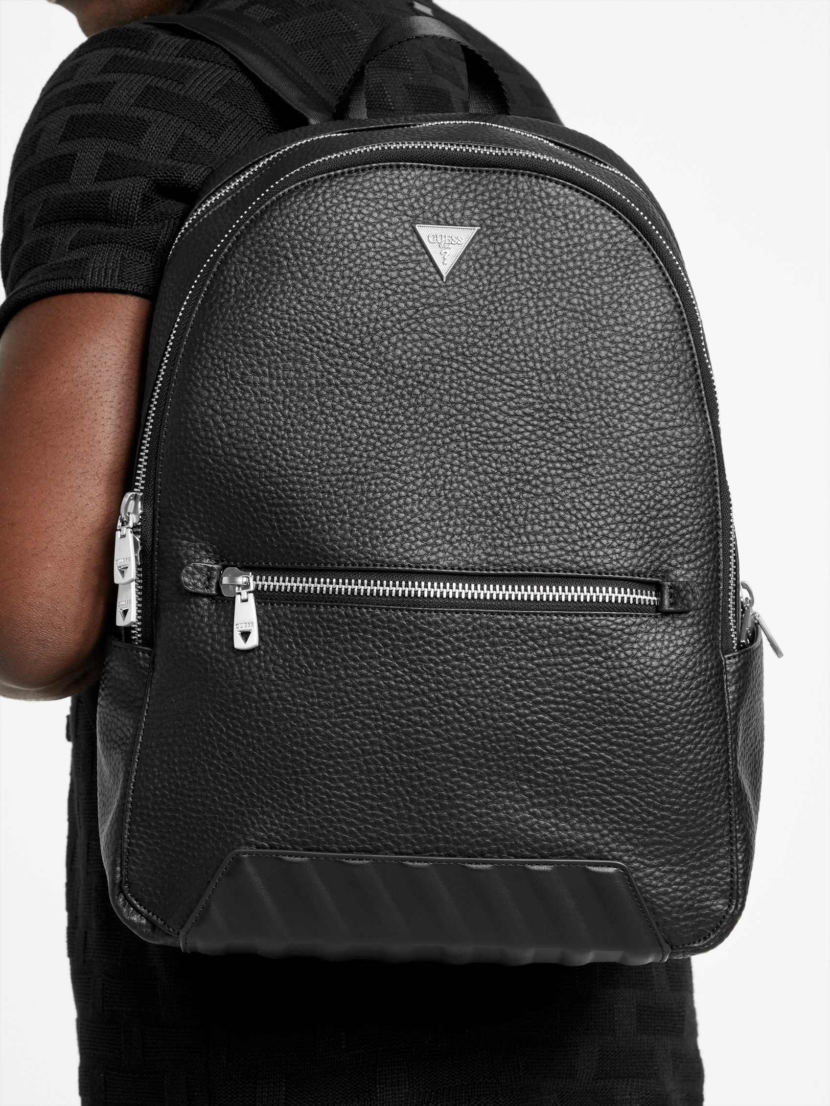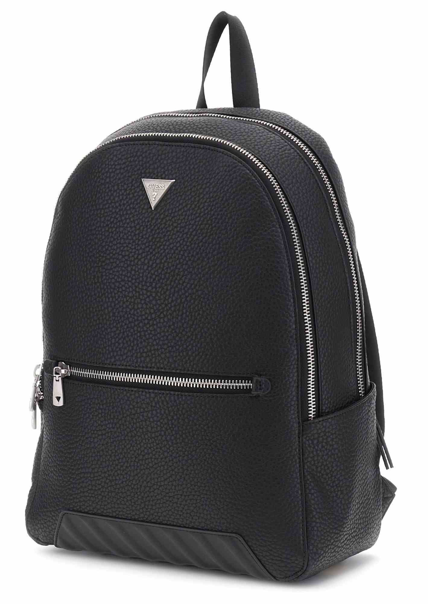 Elevate your style with the Guess Black Polyurethane Solid Men Backpack. This sleek and sophisticated accessory is crafted from durable synthetic material, offering a minimalist aesthetic with subtle branding. Designed for the modern man on the go, it features a spacious 20L capacity across four compartments, providing ample storage for all your essentials. The adjustable straps ensure a comfortable fit, while the classic solid black finish makes it a versatile choice for work, travel, or casual outings.