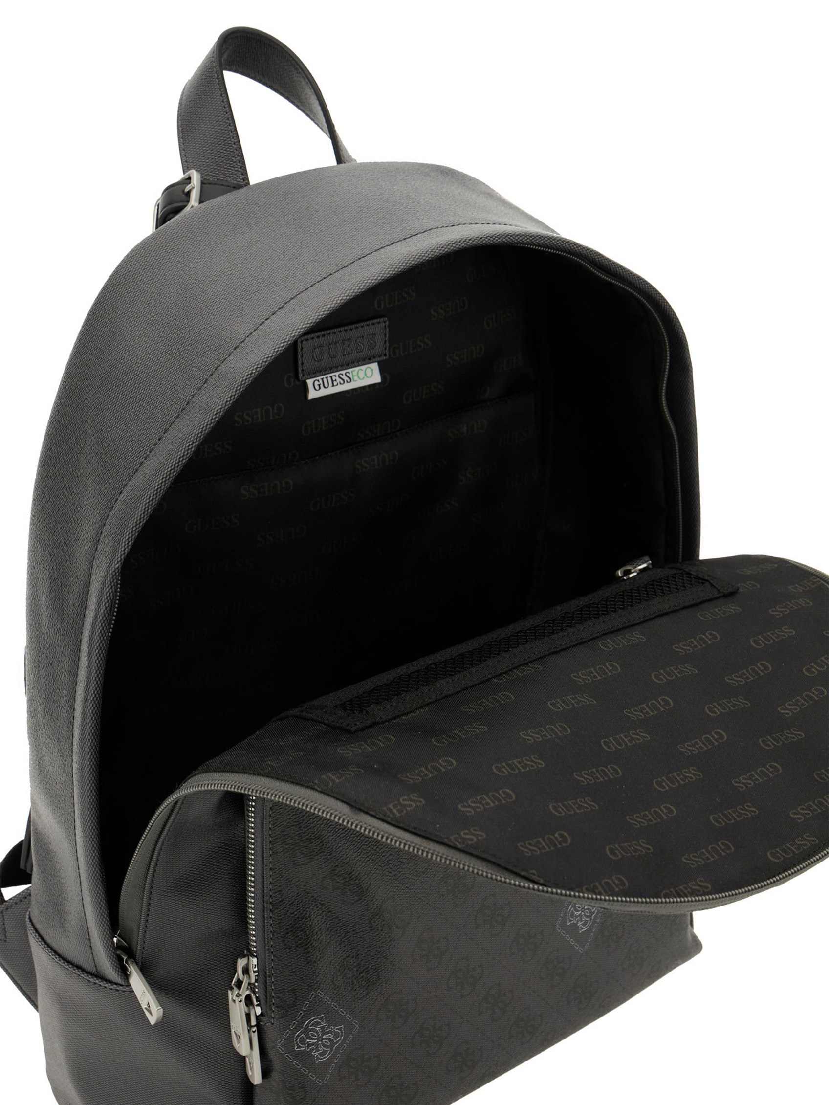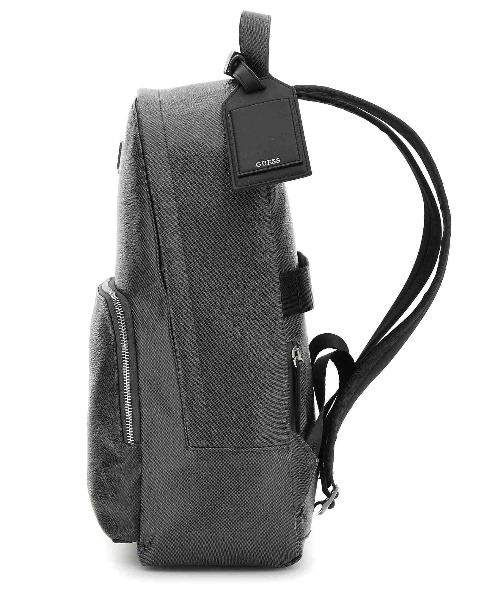 Elevate your style with the Guess Black Polyurethane Solid Men Backpack. This sleek and sophisticated accessory is crafted from durable synthetic material, offering a minimalist aesthetic with subtle branding. Designed for the modern man on the go, it features a spacious 20L capacity across four compartments, providing ample storage for all your essentials. The adjustable straps ensure a comfortable fit, while the wipe-clean polyurethane construction offers long-lasting quality and modern charm. Perfect for work, travel, or casual outings, this backpack seamlessly blends functionality with a timeless black design.
