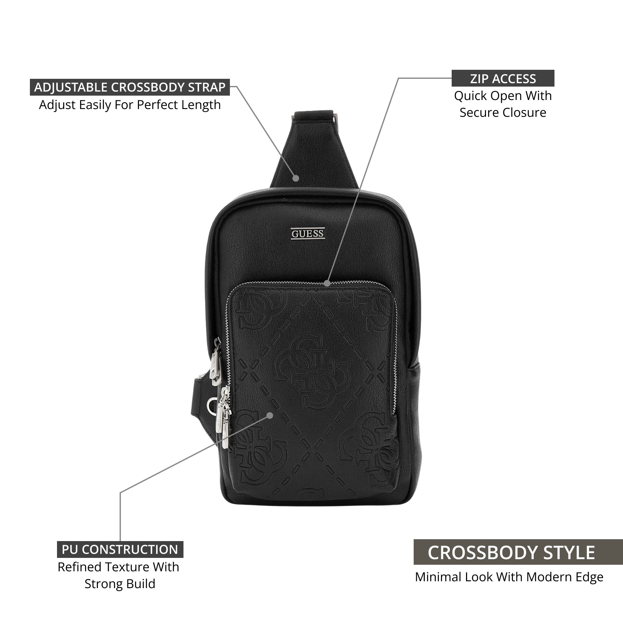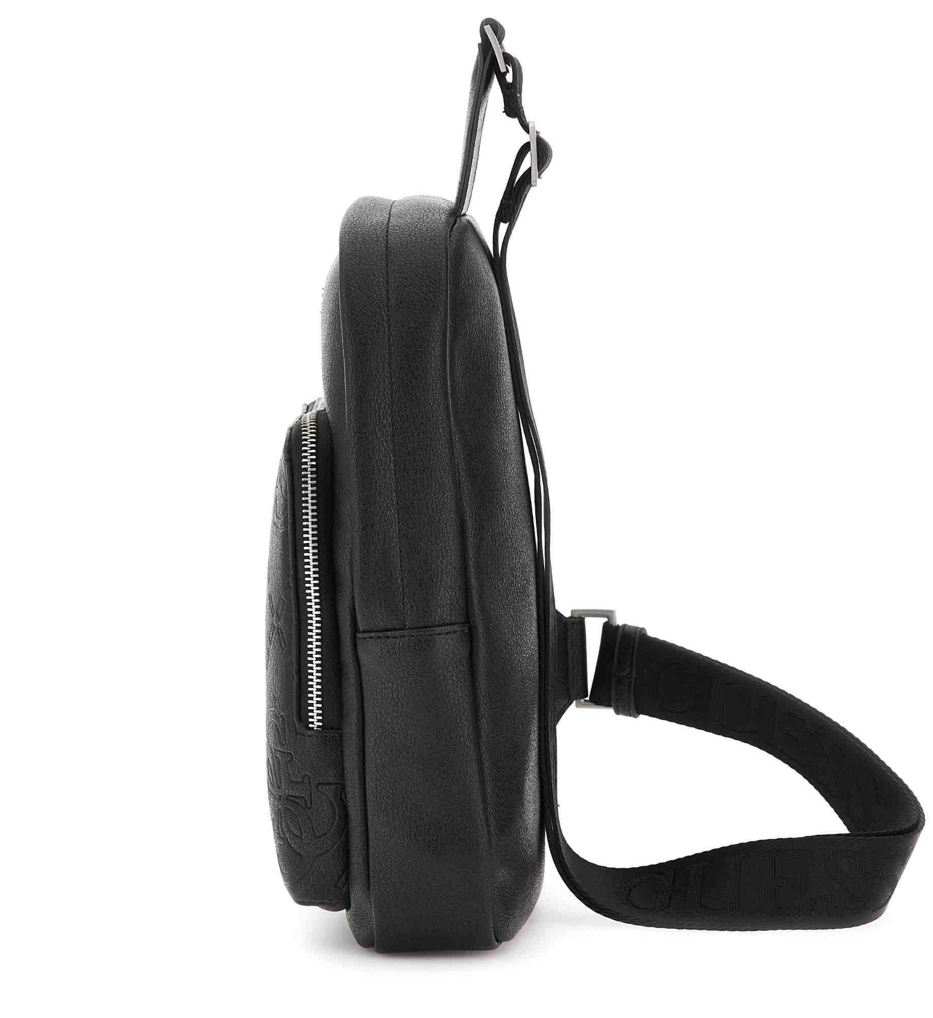 Elevate your everyday look with the Guess Black Polyurethane Solid Men Sling Bag. This stylish and versatile accessory is expertly crafted from durable polyurethane, featuring a sleek, minimalist design that perfectly complements the modern man's wardrobe. Its solid black finish and compact silhouette make it ideal for casual outings, while the signature Guess logo adds a touch of sophisticated charm. Designed for comfort and functionality, this lightweight bag ensures you stay organized and stylish on the go. Experience the perfect blend of contemporary fashion and practical utility with this must-have addition to your collection.