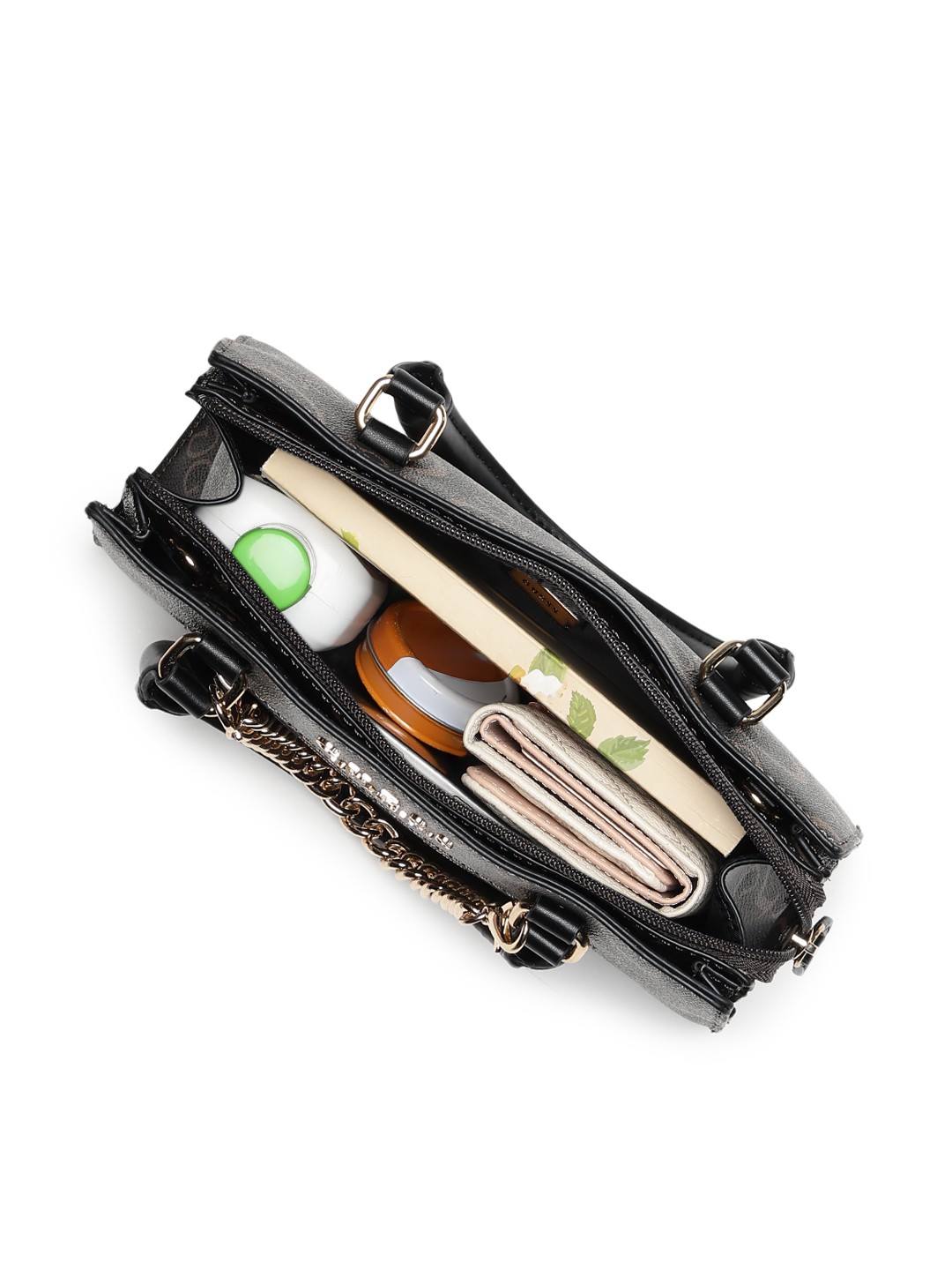 Discover the perfect blend of style and functionality with our Satchel in black crafted from durable PVC fabric. Designed for the modern woman, this satchel features a chic printed pattern that adds a touch of elegance to any outfit. Its spacious interior provides ample room for your essentials while the sturdy handles ensure comfortable carrying. Whether you're heading to the office or a casual outing, this versatile satchel complements your look effortlessly. Elevate your accessory game with this must-have addition to your wardrobe.