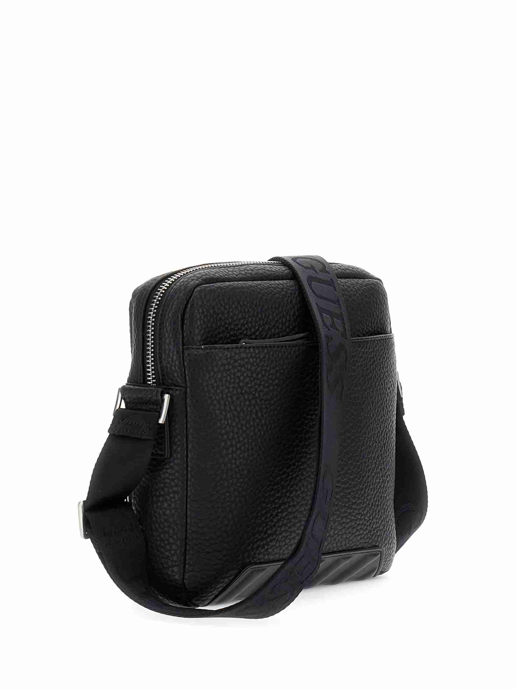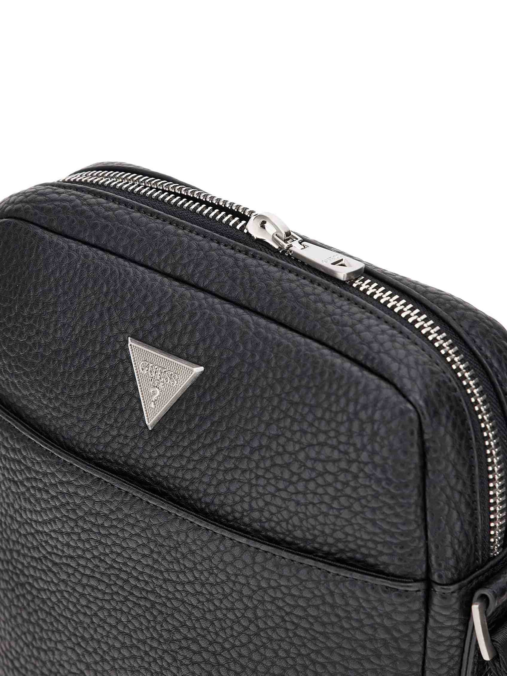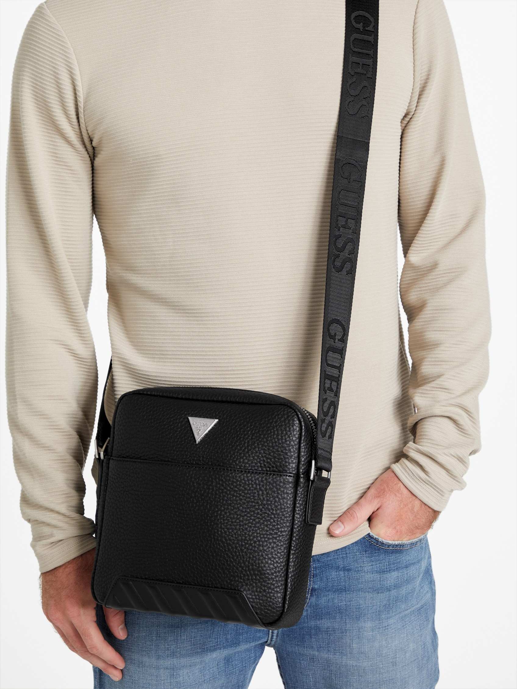 Elevate your style with the sleek and versatile Guess Black PU Solid MEN Cross Body bag. Crafted from durable PU material, this cross body bag offers both fashion and function. With multiple compartments, adjustable strap, and a stylish design, this bag is perfect for on-the-go individuals who want to stay organized without sacrificing style. Whether you are running errands or heading out for a night on the town, this bag is the perfect accessory to keep your essentials close at hand. Upgrade your accessories collection with the Guess Black PU Solid MEN Cross Body bag today.