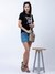 Black Printed Round Neck Short Sleeves T-Shirt