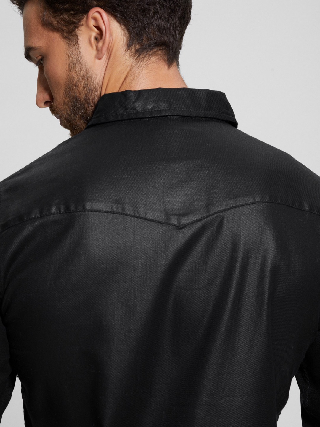 Black Solid Spread Collar Full Sleeves Shirt