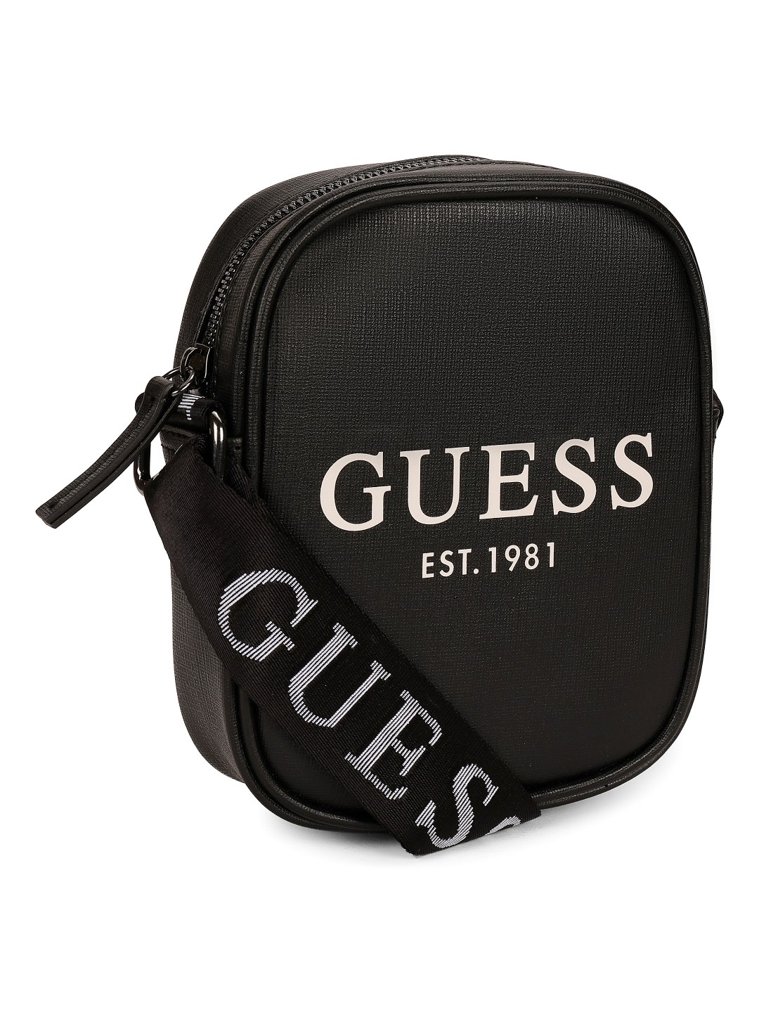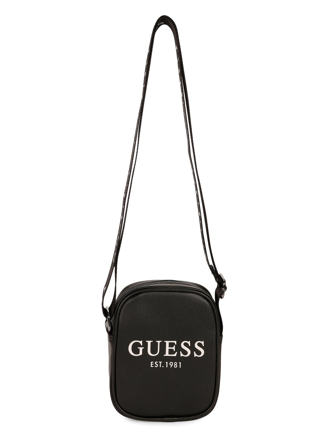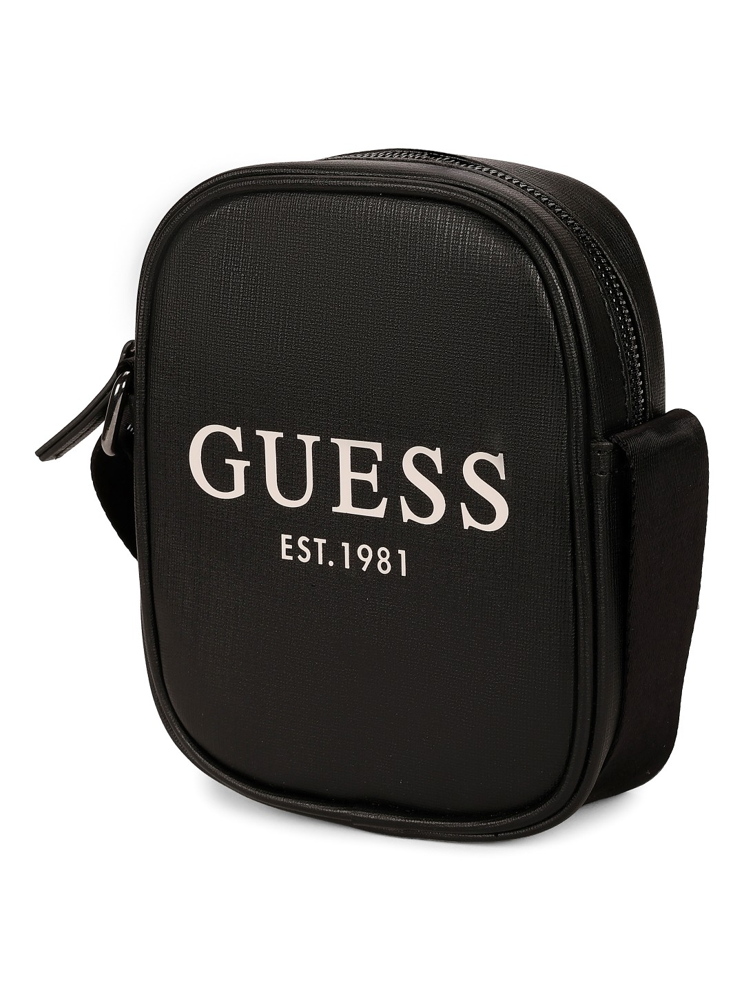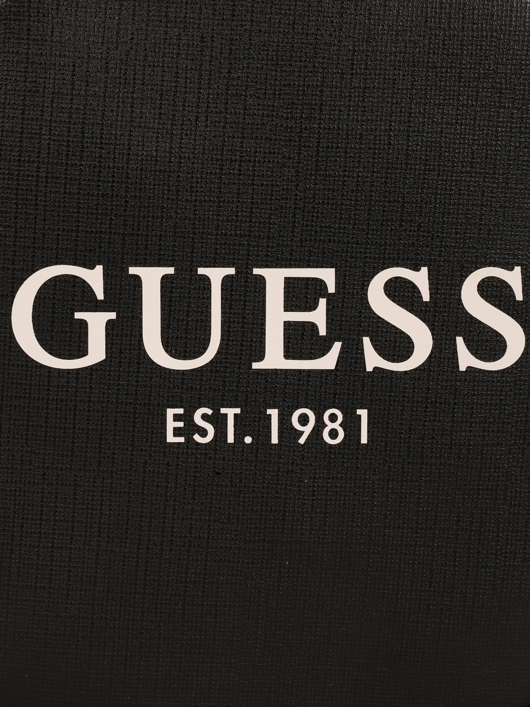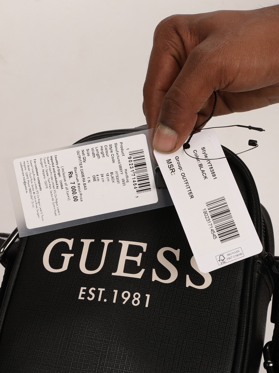 Elevate your style and keep your essentials secure with the Guess Black PVC Printed MEN Camera Bag. This sleek and durable bag is perfect for the modern man on the go, featuring a trendy black PVC design with a bold Guess logo print. With multiple compartments and adjustable straps, this camera bag offers both functionality and fashion-forward appeal. Whether you are capturing moments or exploring the city, this bag is a must-have accessory for every stylish photographer. Carry your gear in style with the Guess Black PVC Printed MEN Camera Bag.
