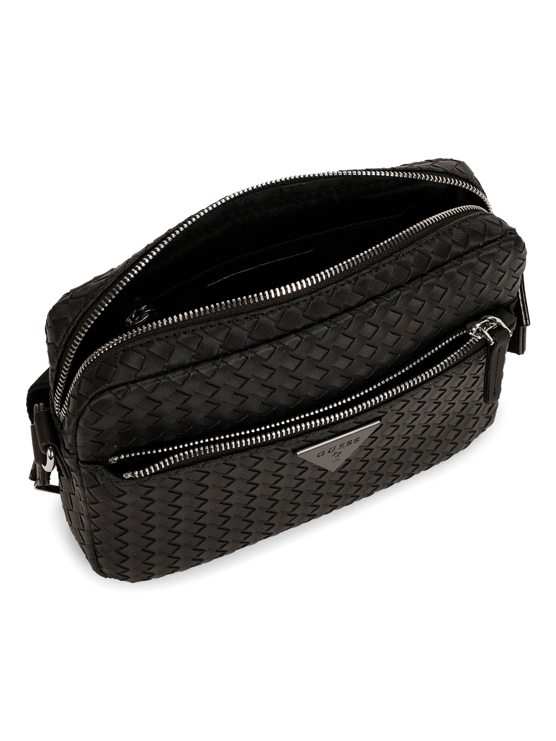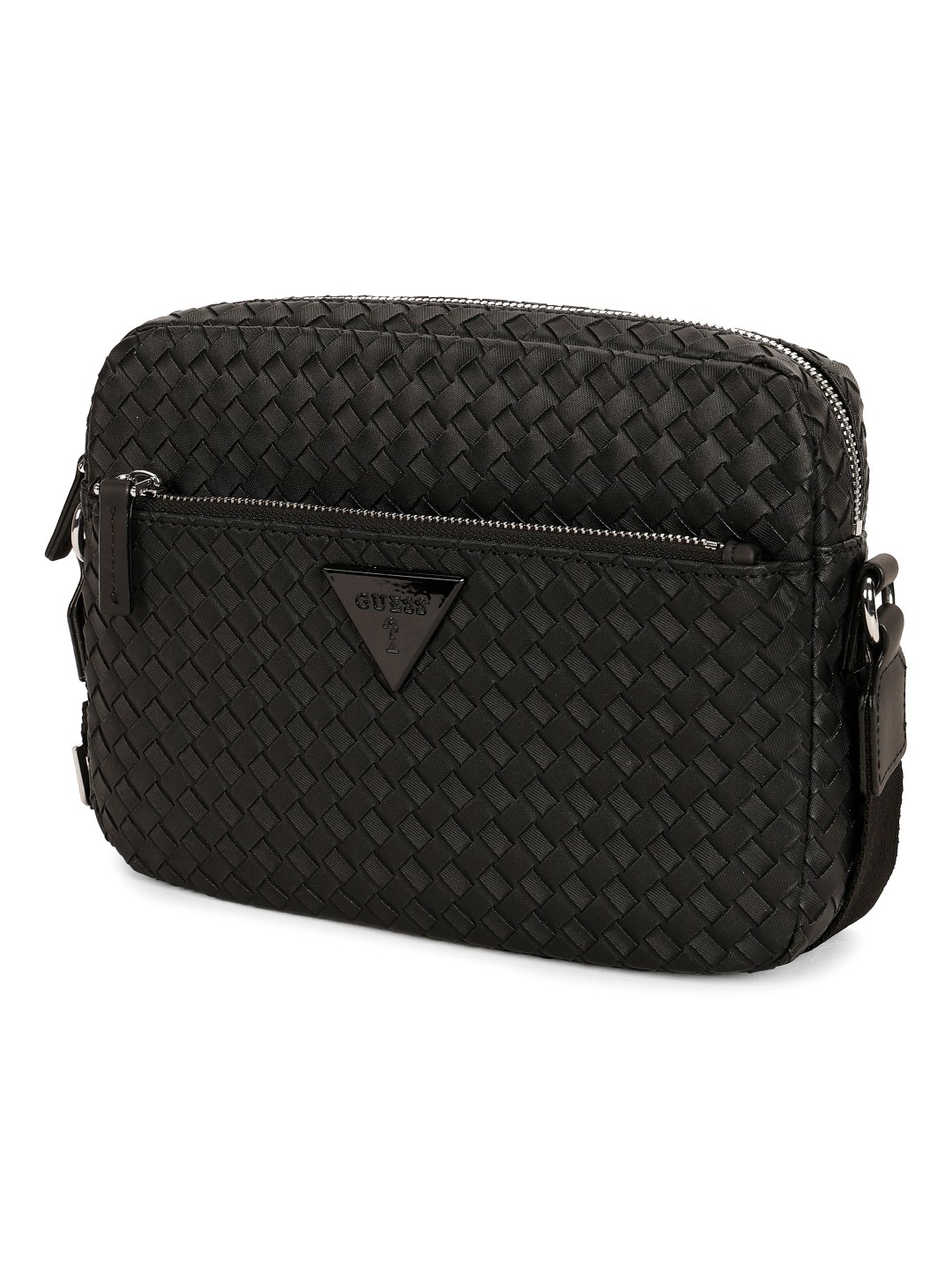 Elevate your style with the Guess Black PVC Woven Design MEN Cross Body bag. Made with durable PVC material and featuring a trendy woven design, this versatile accessory seamlessly combines fashion and functionality. The adjustable cross body strap offers comfort and convenience, while the spacious interior provides ample room for your essentials. Whether you are heading to work or out for a casual weekend outing, this sleek bag is the perfect blend of practicality and style. Upgrade your look with the Guess Black PVC Cross Body bag today.