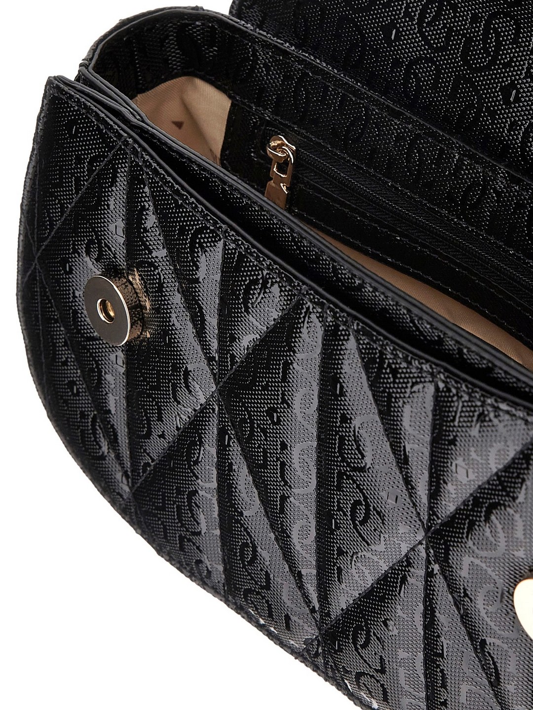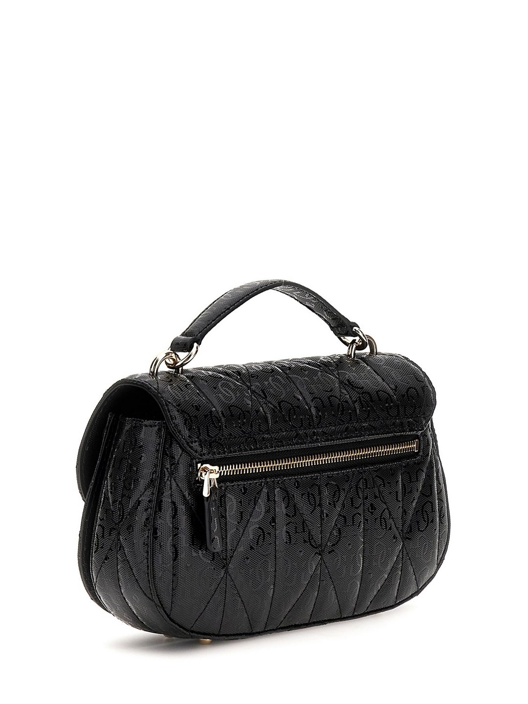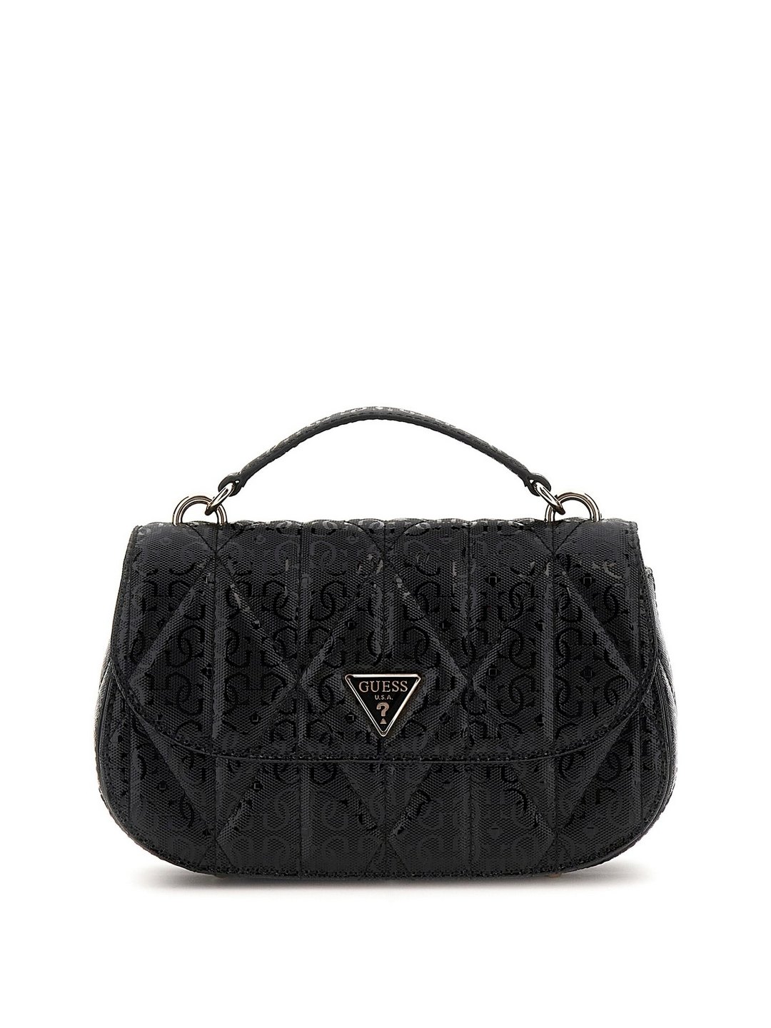 Guess Black Quilted Aldina Top Handle Flap Crossbody Bag