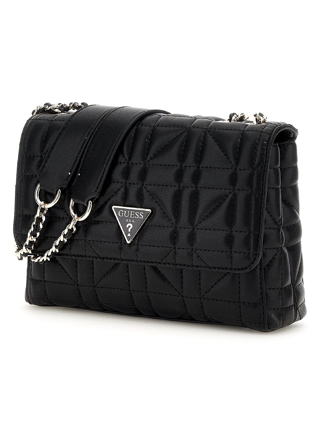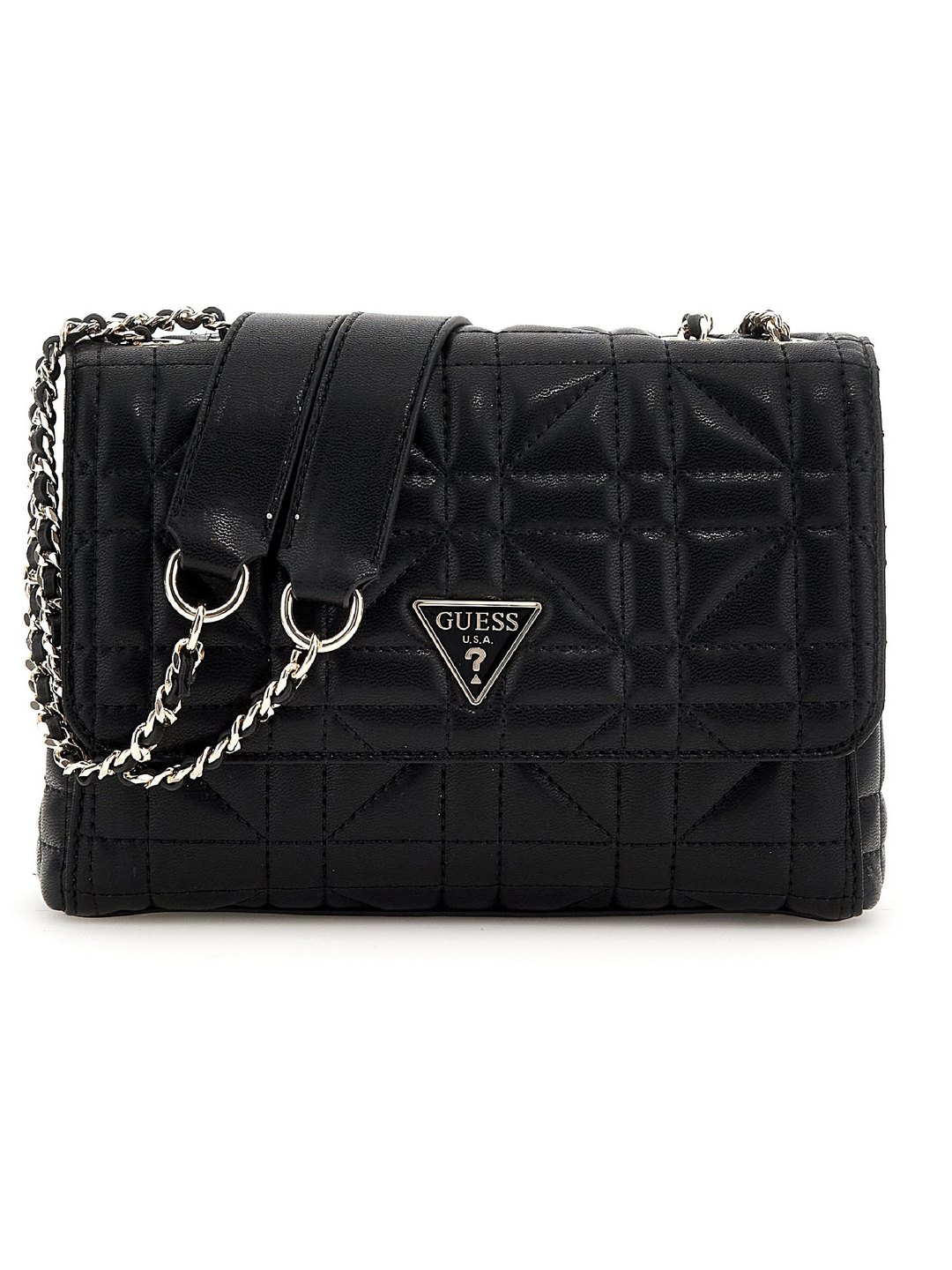 Guess Women Black Quilted Chain Strap Crossbody Bag