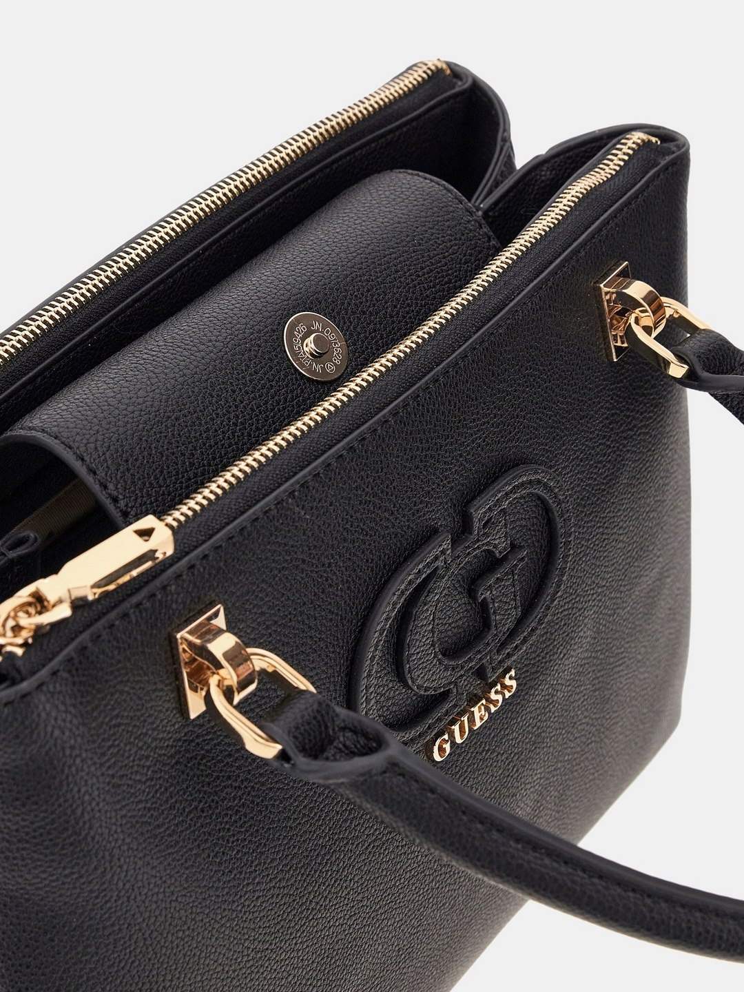 Guess Women Black Textured Adjustable Detachable Strap Satchel Bag