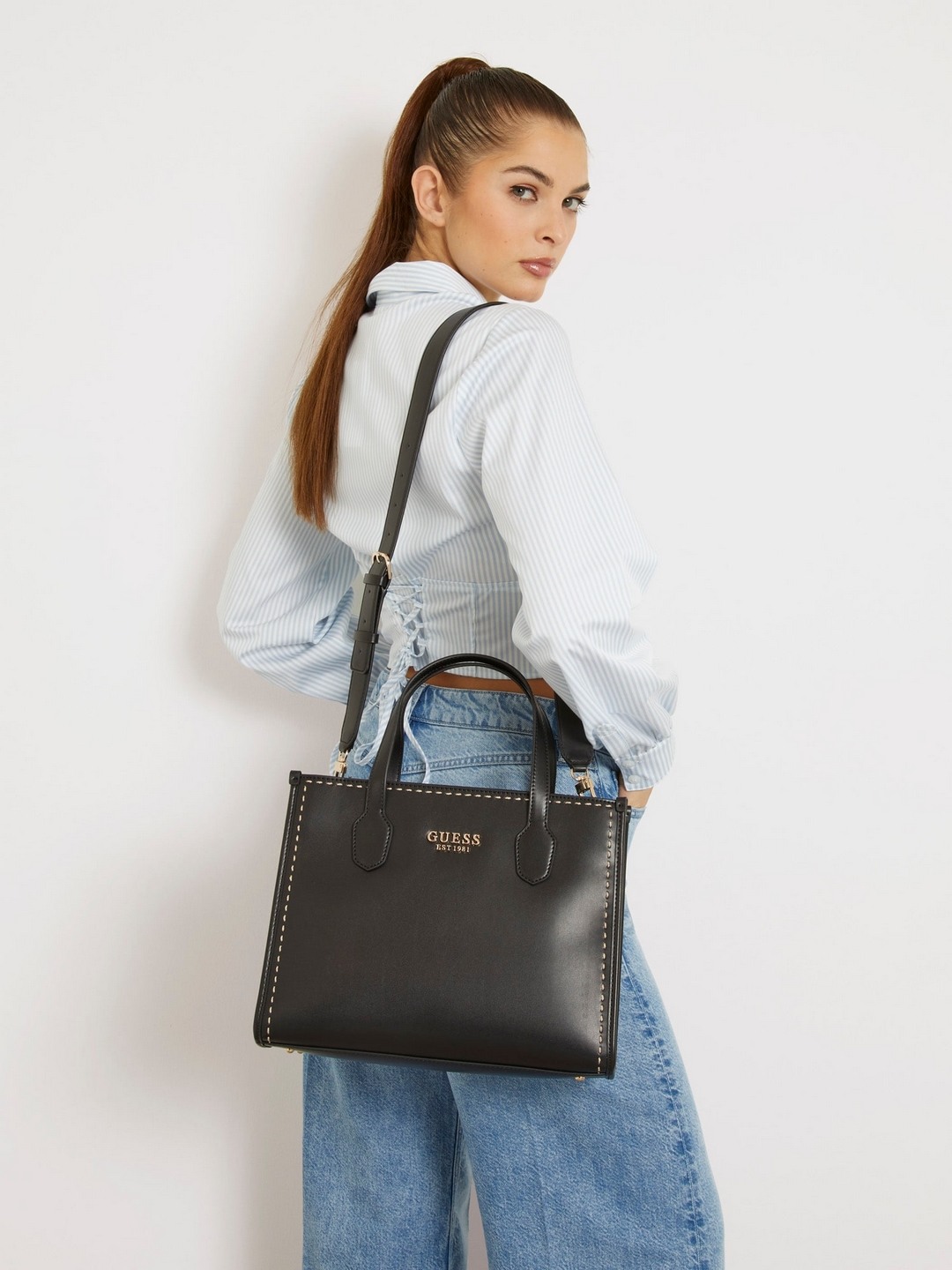 Discover the perfect blend of style and functionality with our black tote bag crafted from high-quality PU fabric. Designed for the modern woman, this tote features a sleek solid pattern that effortlessly complements any outfit. Its spacious interior provides ample room for your essentials, making it ideal for work, shopping, or a day out. The sturdy handles ensure comfortable carrying, while the durable material promises long-lasting use. Elevate your accessory collection with this versatile and chic tote bag, perfect for any occasion.