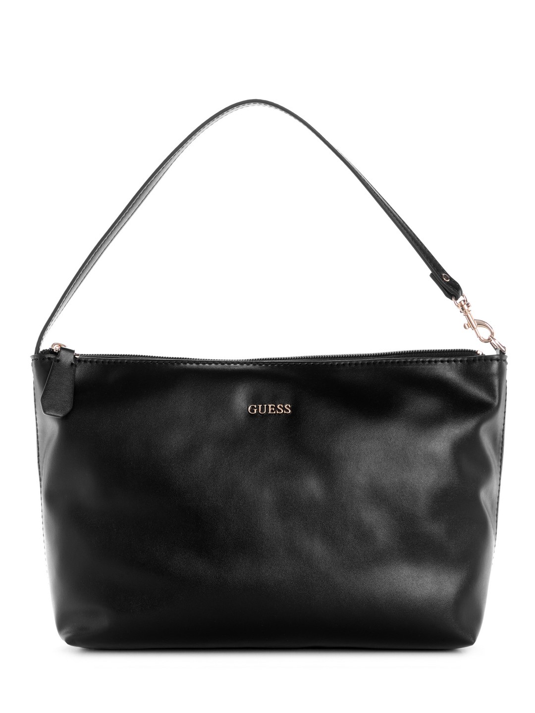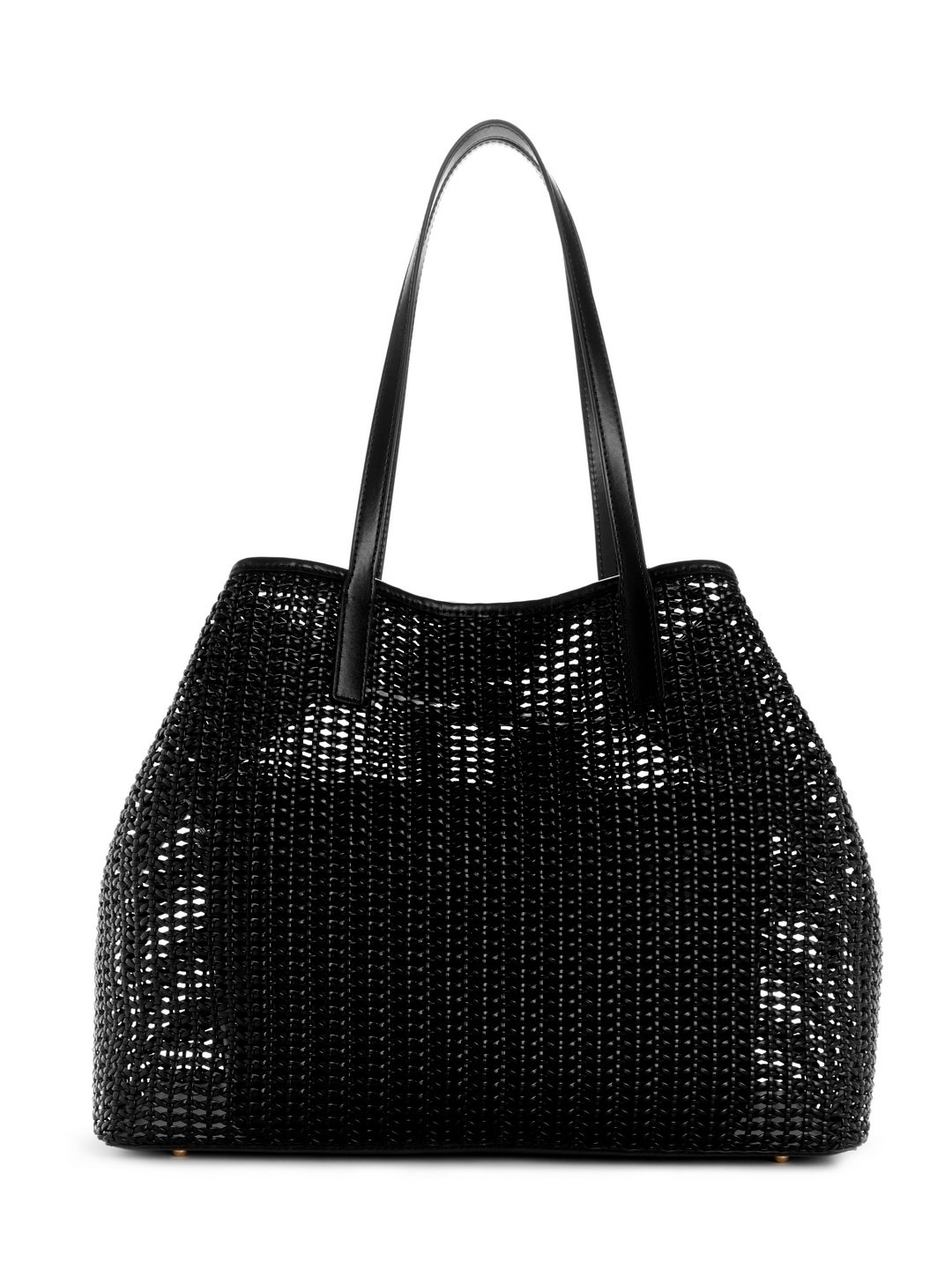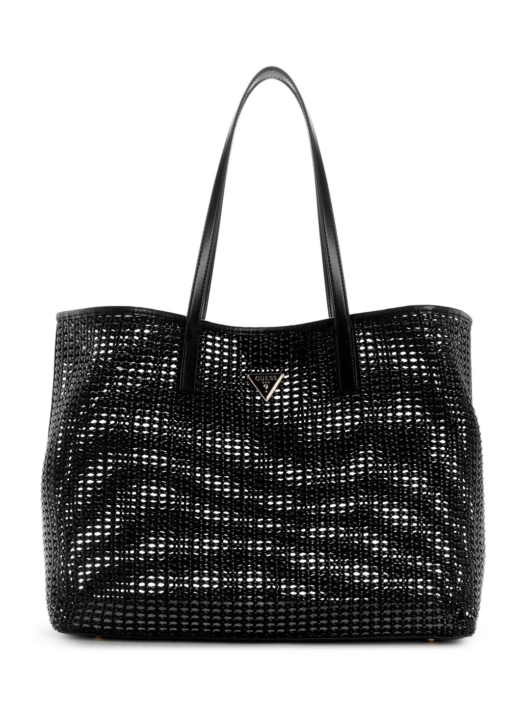 Guess Women Black Woven Lattice Top Handles Tote Bag with Inner Pouch