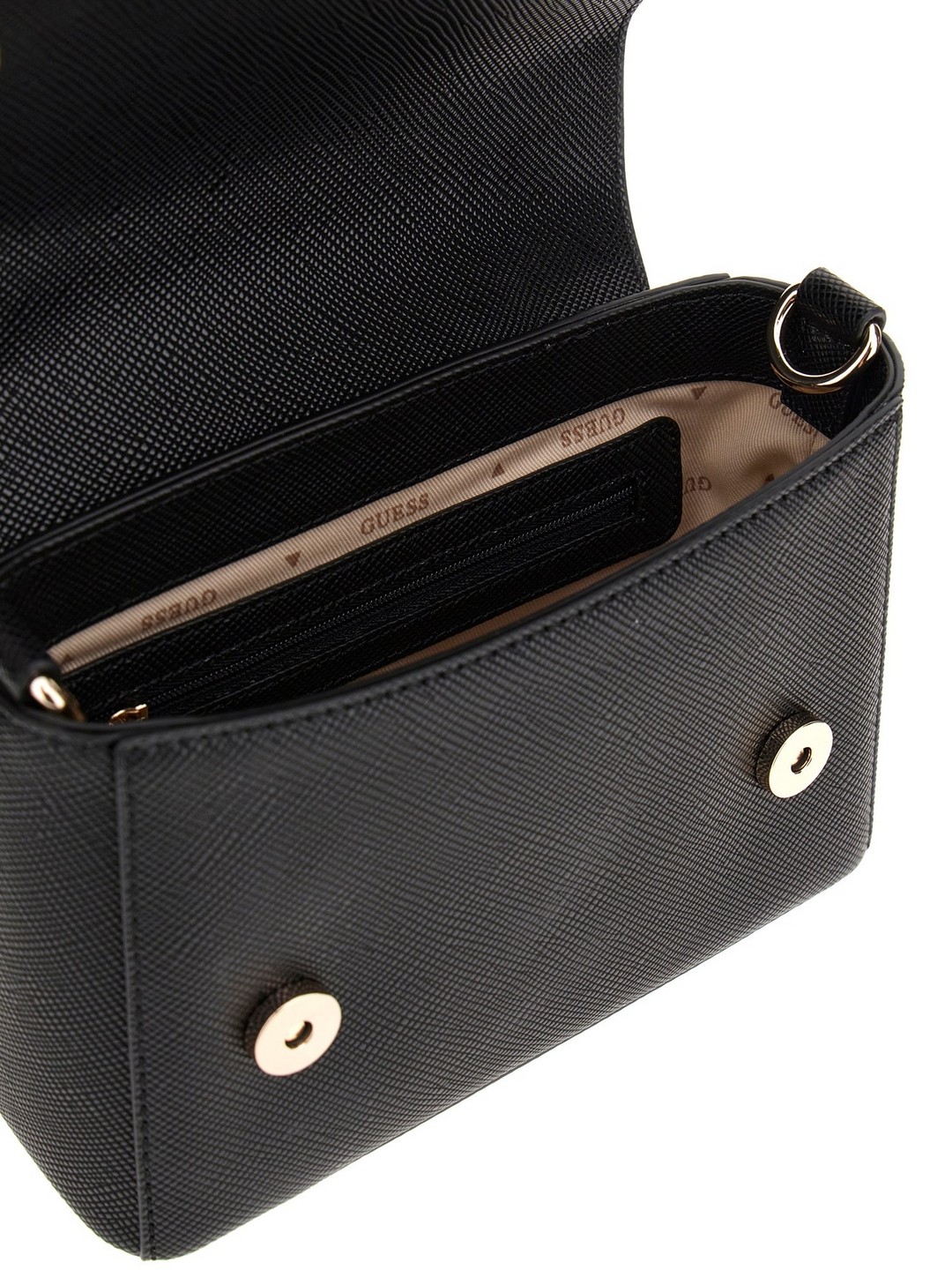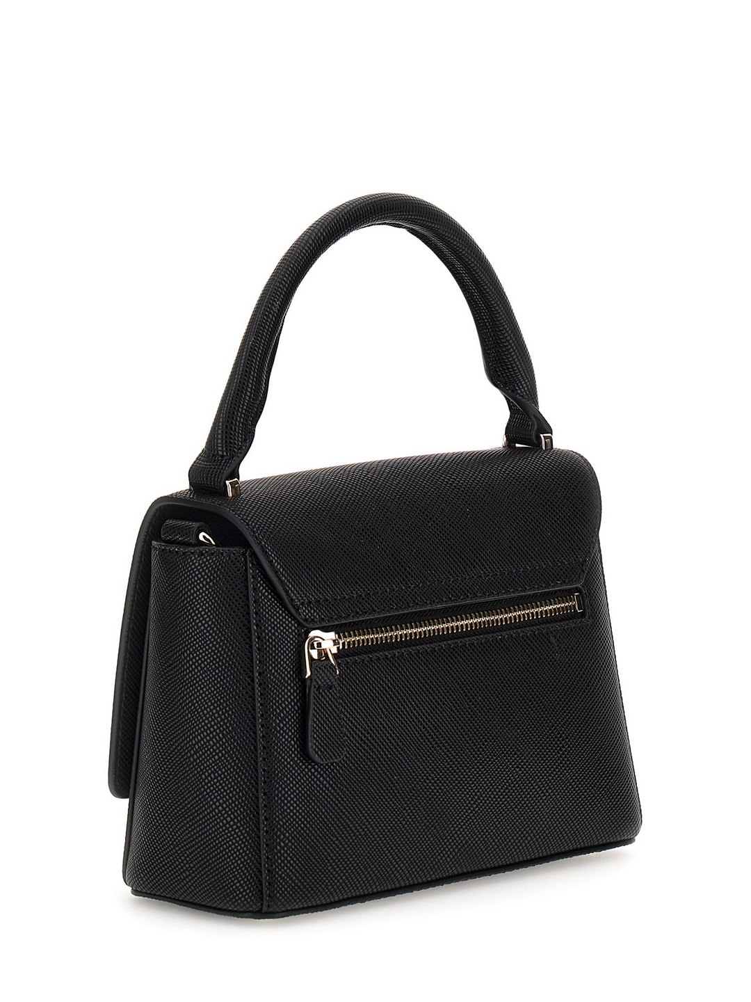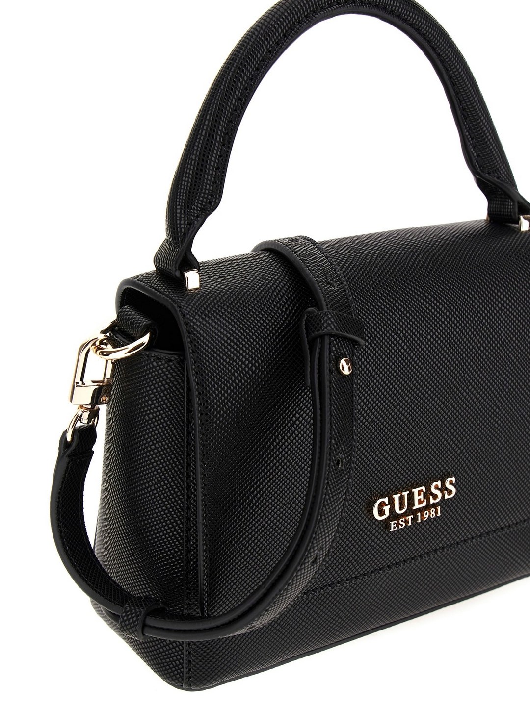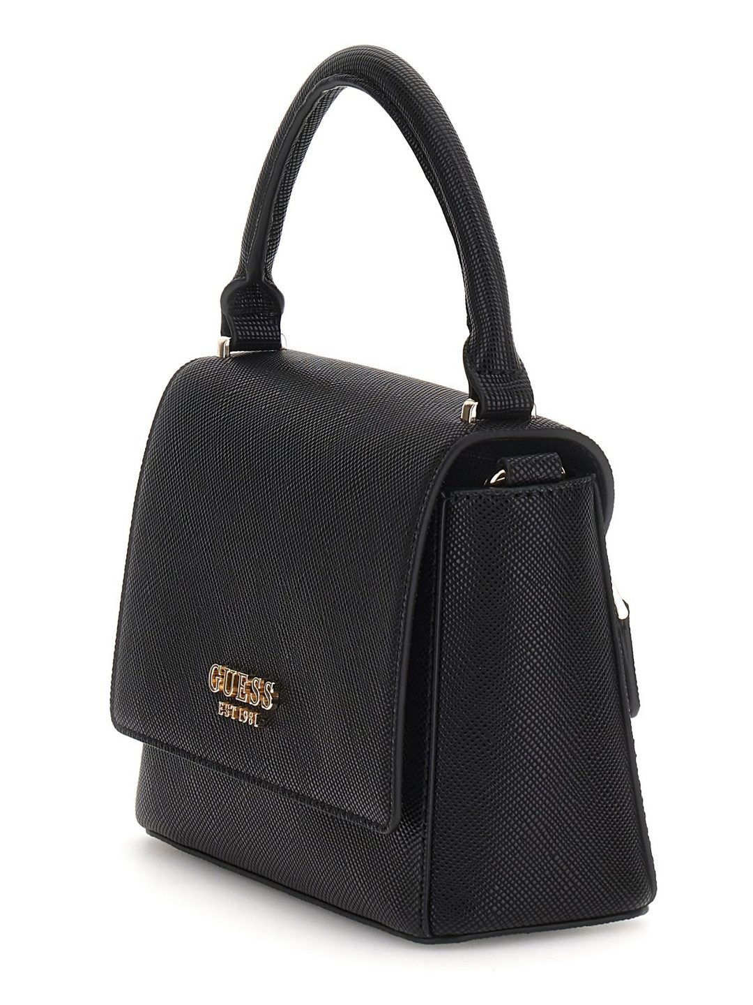 Guess Black Textured Fedana Top Handle Flap Satchel Bag