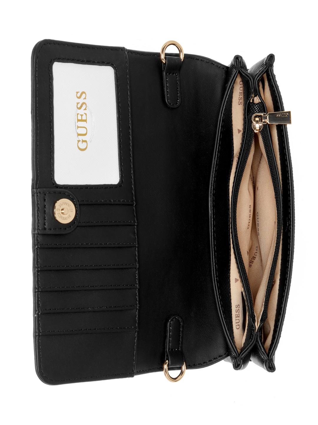 Guess Black Textured Noelle Flap Organizer Crossbody Bag