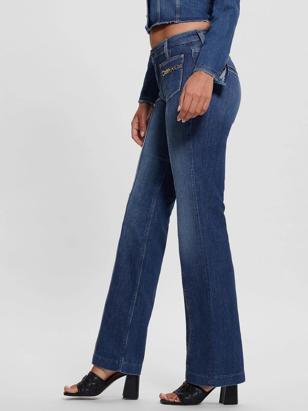 Women Blue Solid Mid-Rise Ankle Length Jeans
