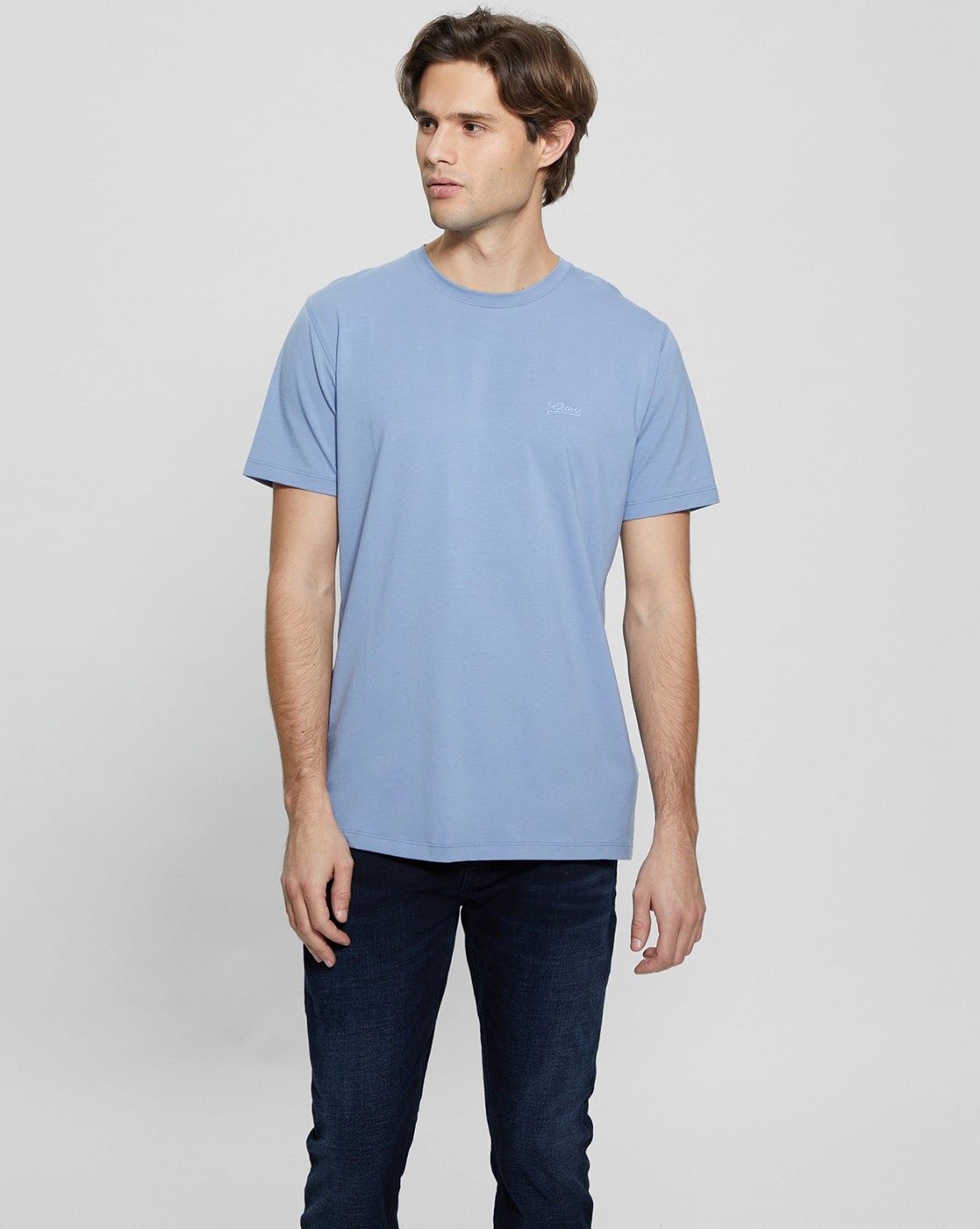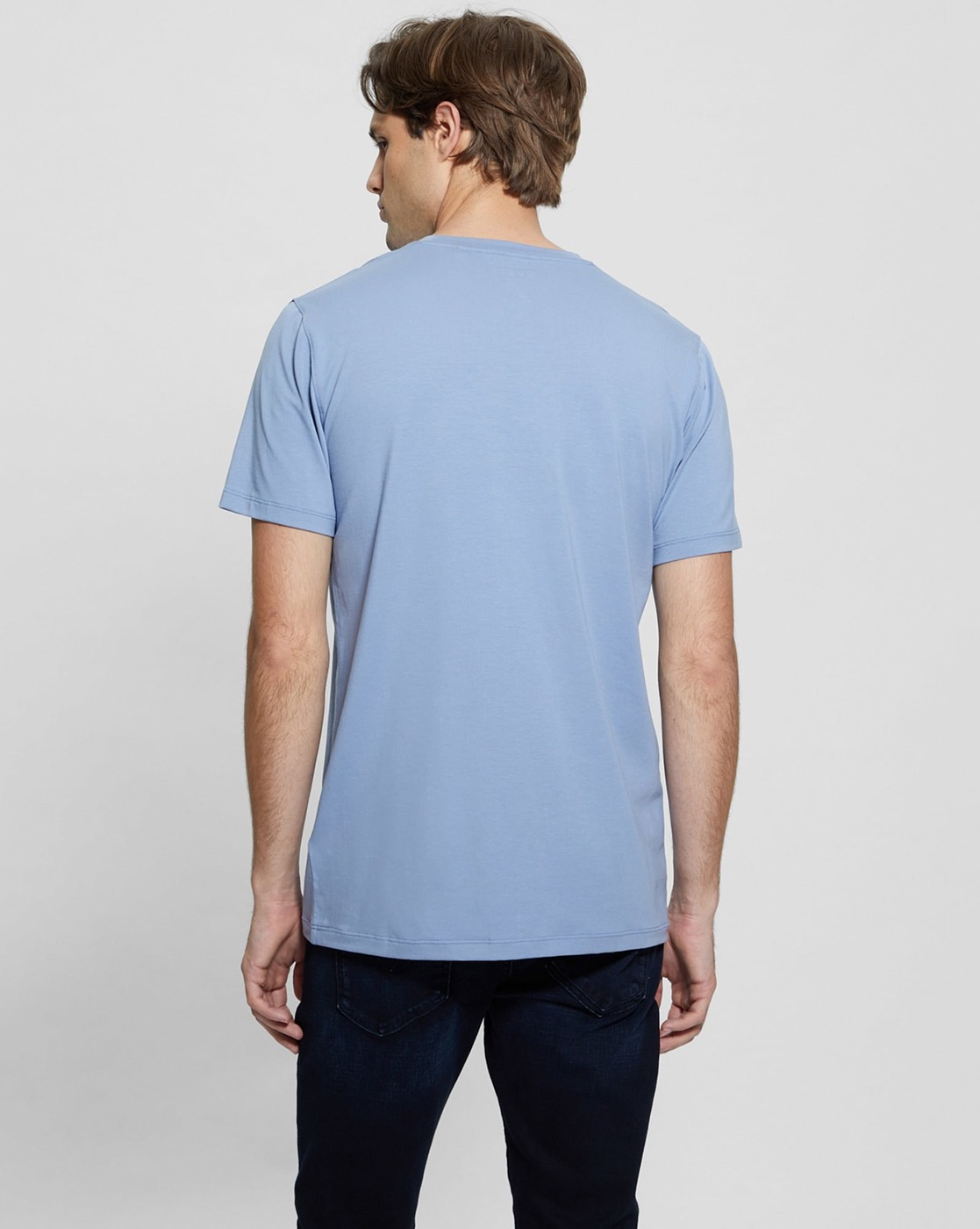 • Guess Men's Blue Cotton Blend Solid Slim Fit Crew Neck Short Sleeve T-shirt