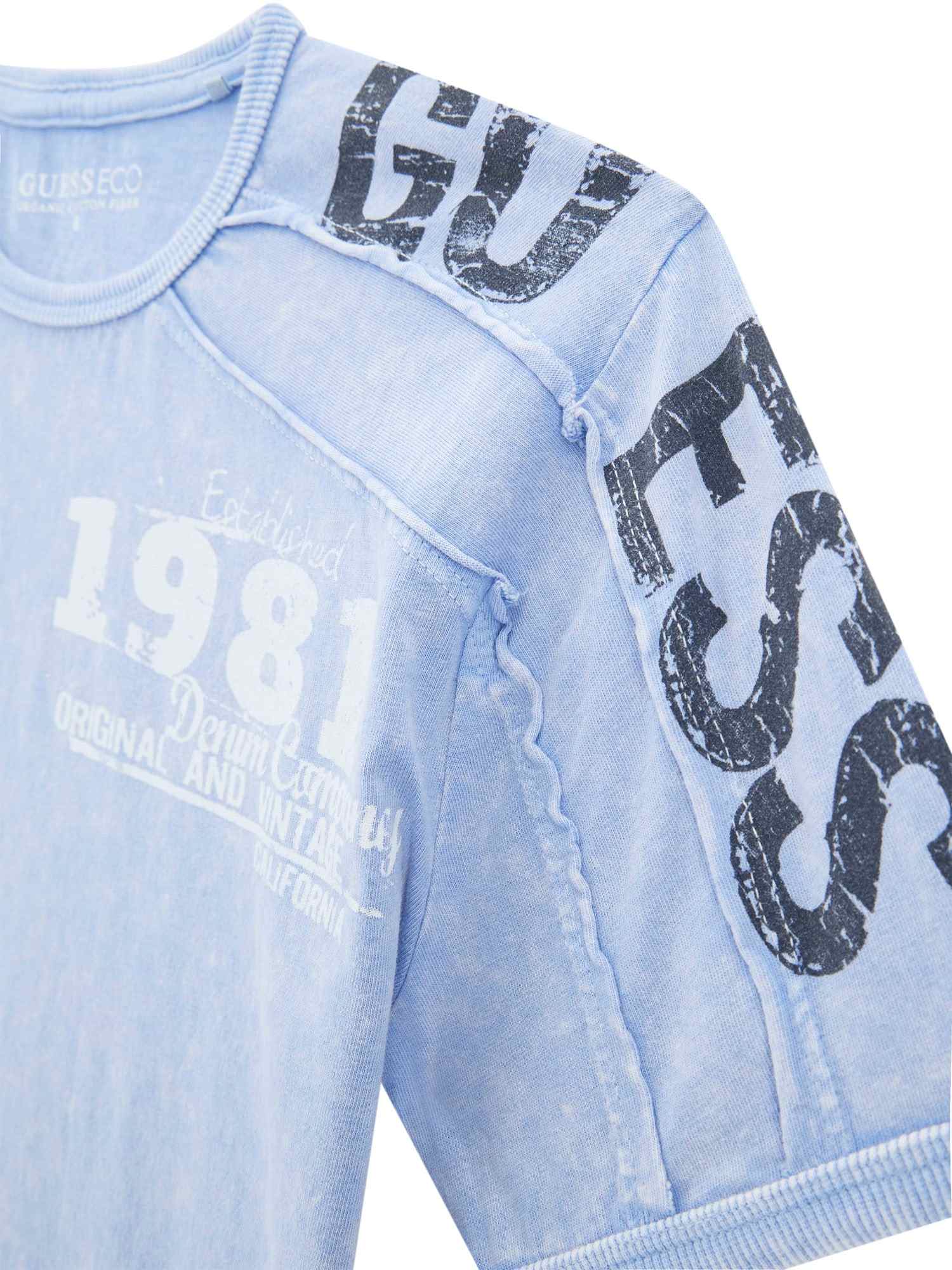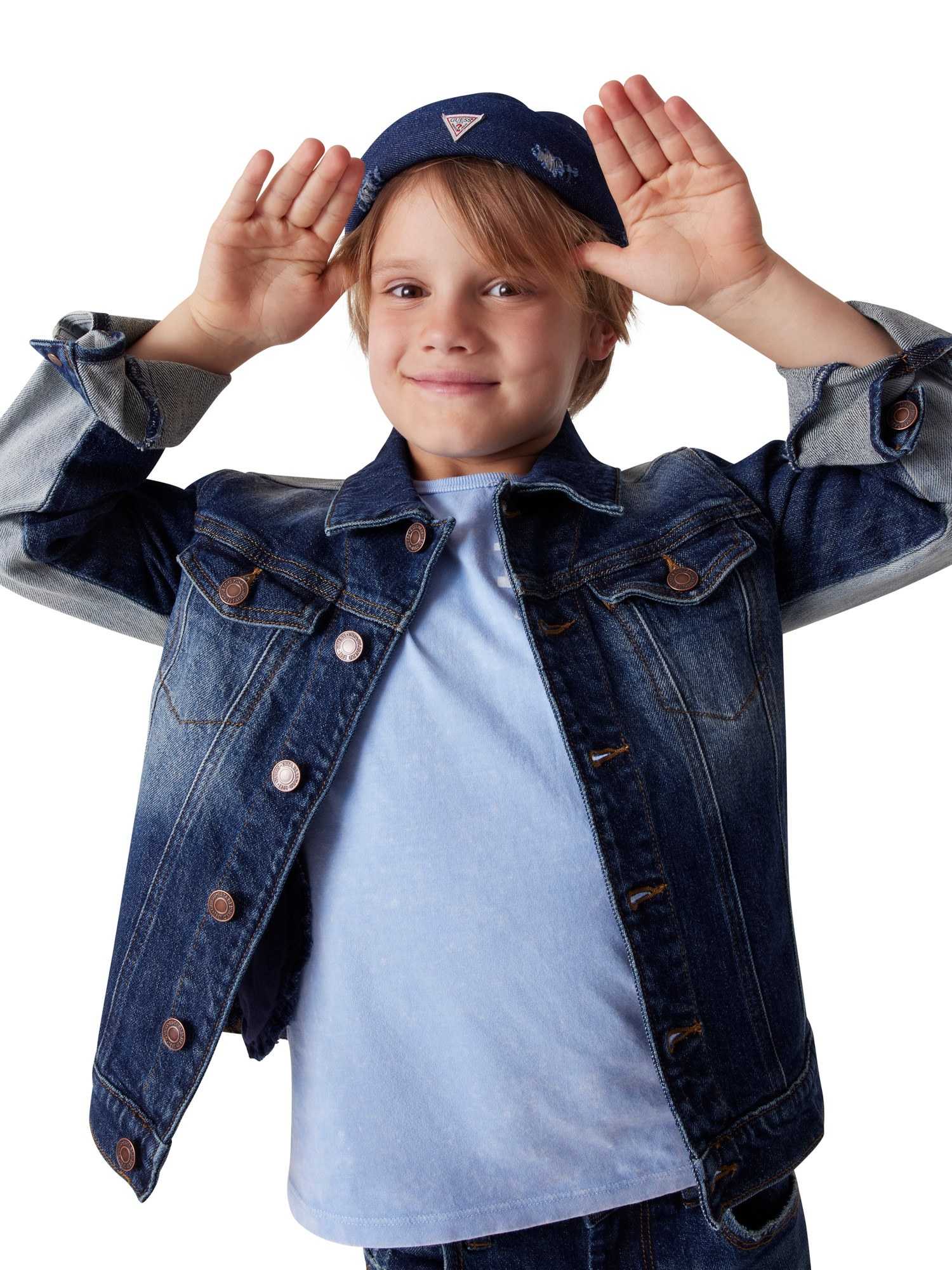 Get your little man ready for a day of fun and style with the Guess Blue Cotton Print Boys Tshirt. Made from soft and breathable cotton, this shirt features a trendy blue print that will make him stand out from the crowd. Perfect for playdates or casual outings, this tshirt is comfortable and stylish, making it a must-have addition to his wardrobe. Let him express his personality with this versatile and eye-catching shirt.