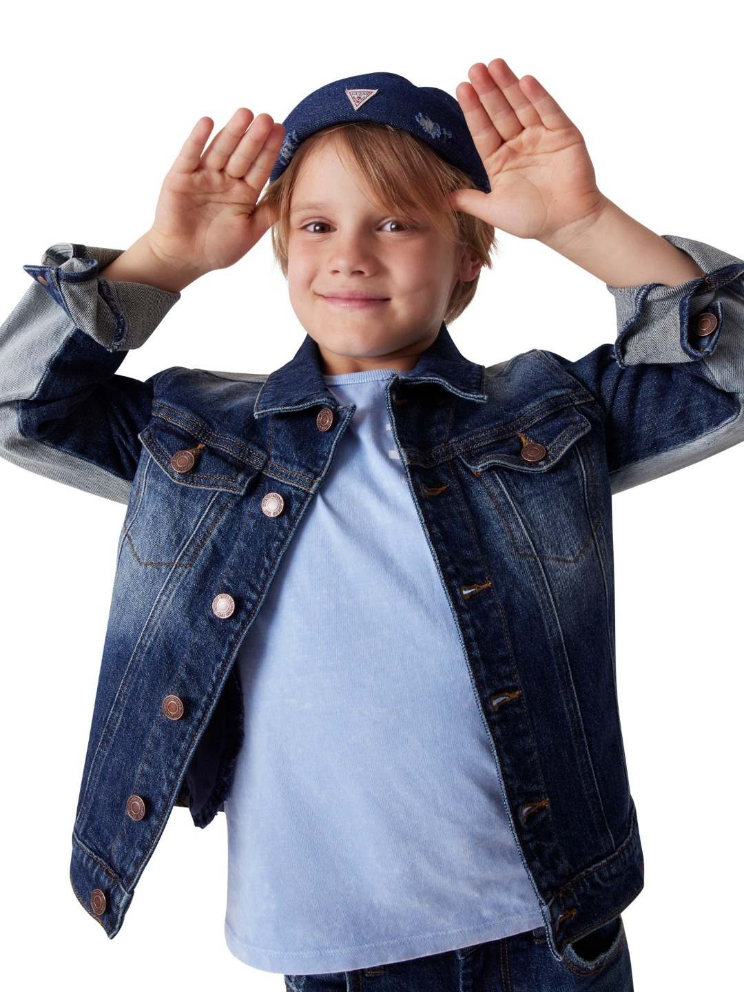 Elevate your young gentleman's wardrobe with the Guess Blue Cotton Solid Boys Jacket. This stylish and versatile jacket is expertly crafted from premium cotton, ensuring a soft feel and breathable comfort for all-day wear. The classic blue shade and solid design offer a timeless look that pairs effortlessly with any outfit, while the quality construction provides the durability needed for active boys. Perfect for layering during cooler months, this jacket combines a sophisticated aesthetic with practical everyday utility, making it a must-have essential for his seasonal collection.