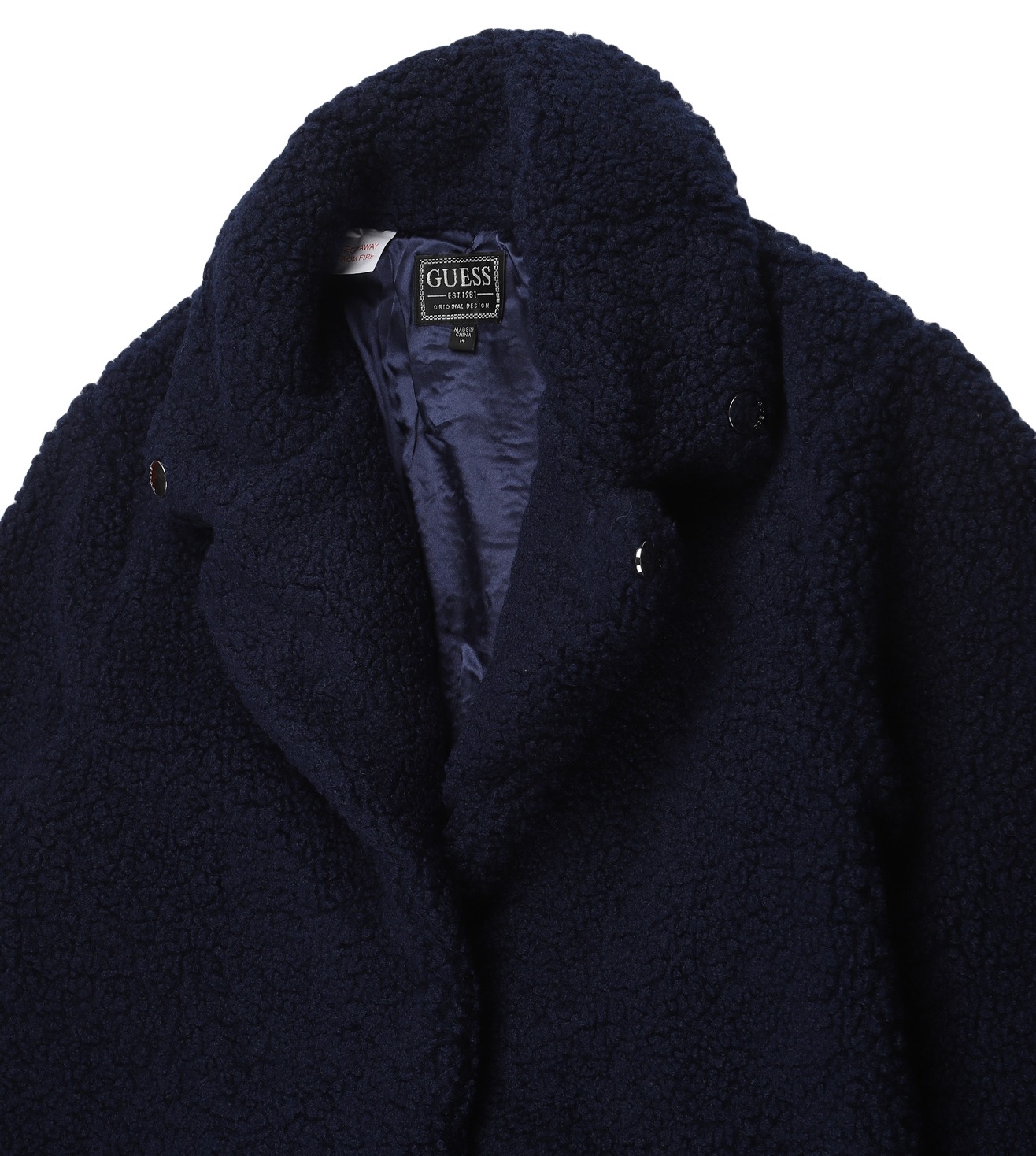 • Luxurious shearling coats from Guess, crafted for warmth and style. Embrace the cozy comfort of genuine shearling with timeless designs and modern silhouettes.