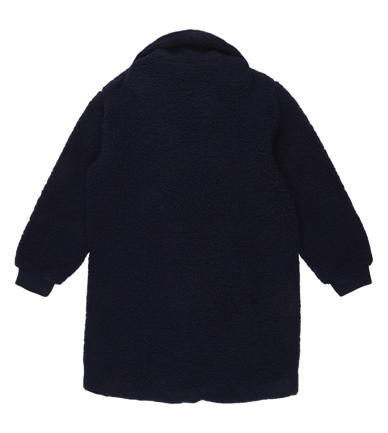Blue Notch Collar Full Sleeves Solid Shearling Coat