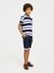 Blue Polo Collar Short Sleeves Striped Polo T-Shirt