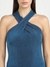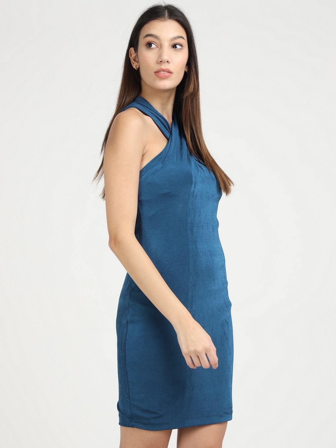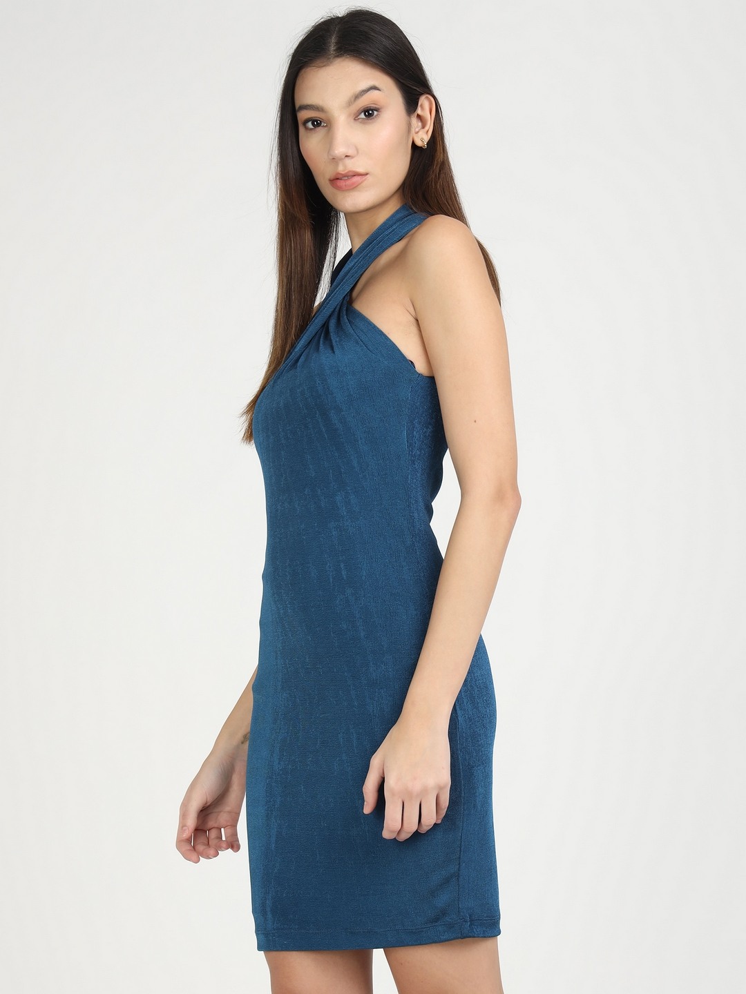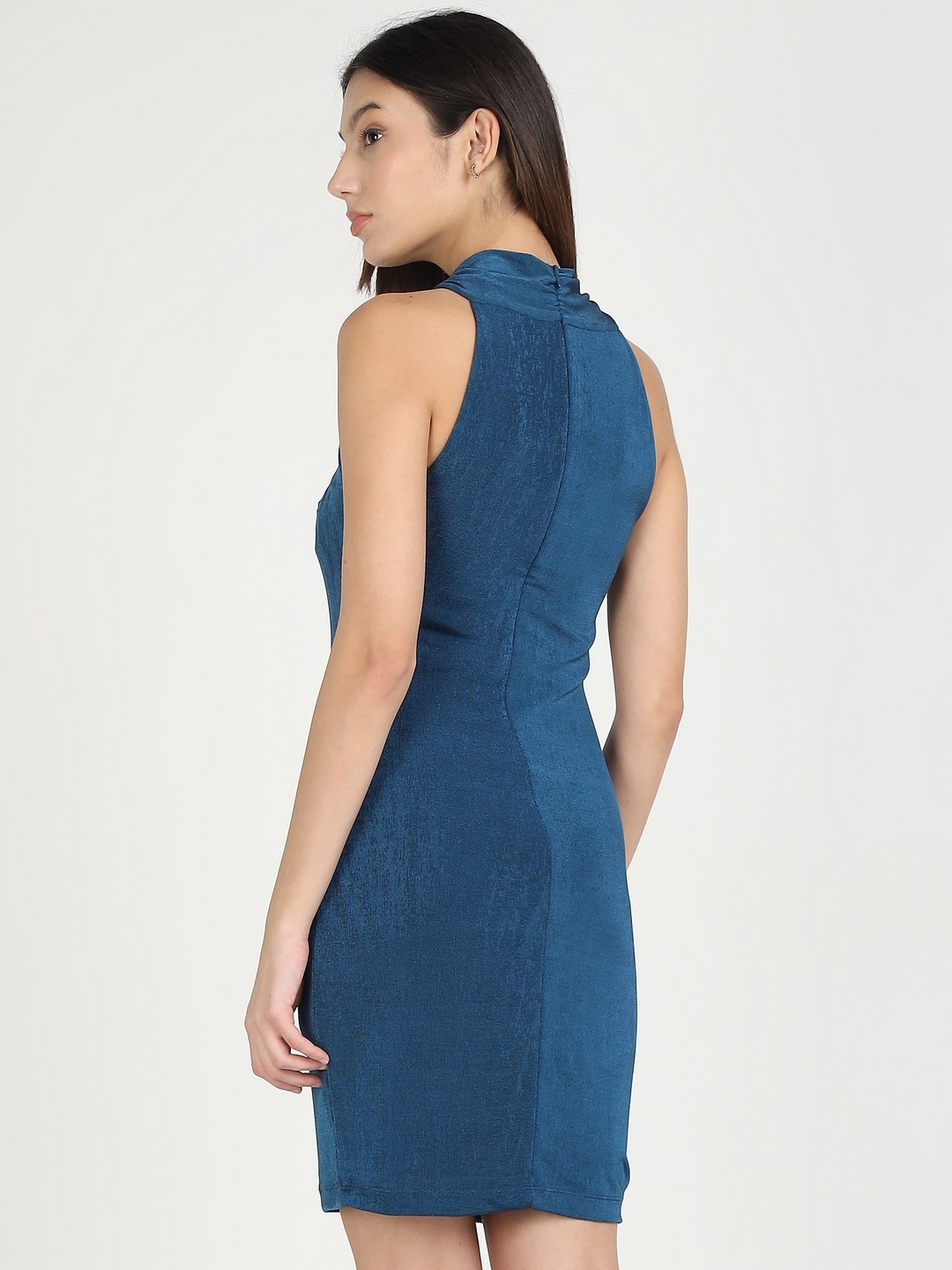 Teal Solid Halter Neck Sleeveless Bodycon Dress