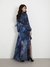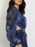 Blue Printed V-Neck Full Sleeves Fit And Flare Dress