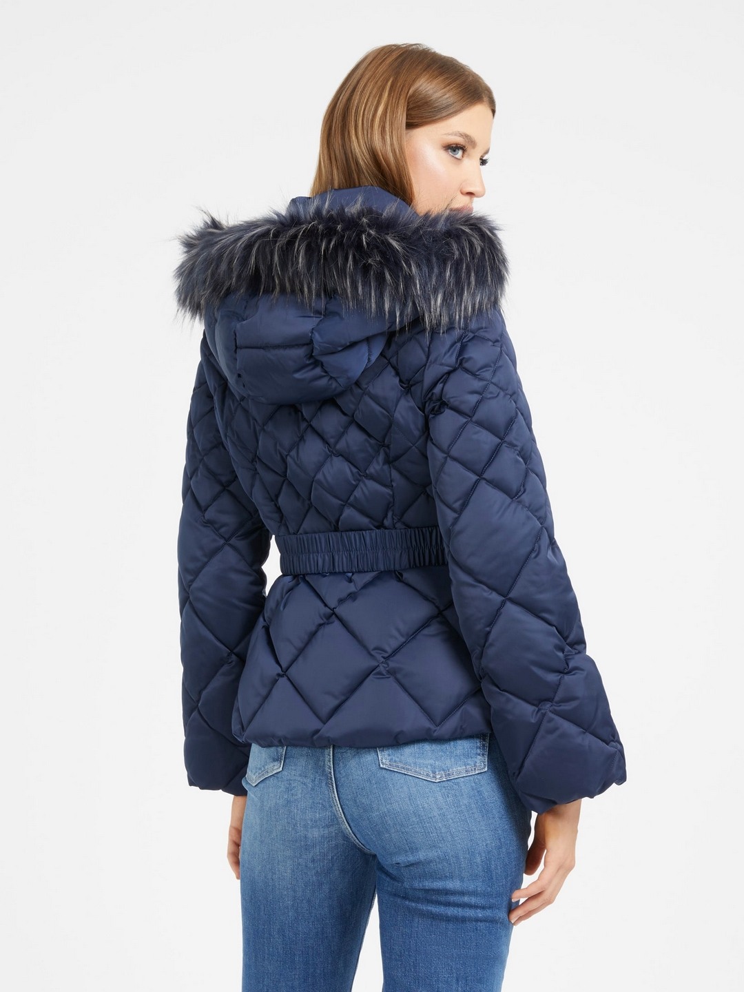 Navy Blue Solid Hooded Full Sleeves Quilted Jacket