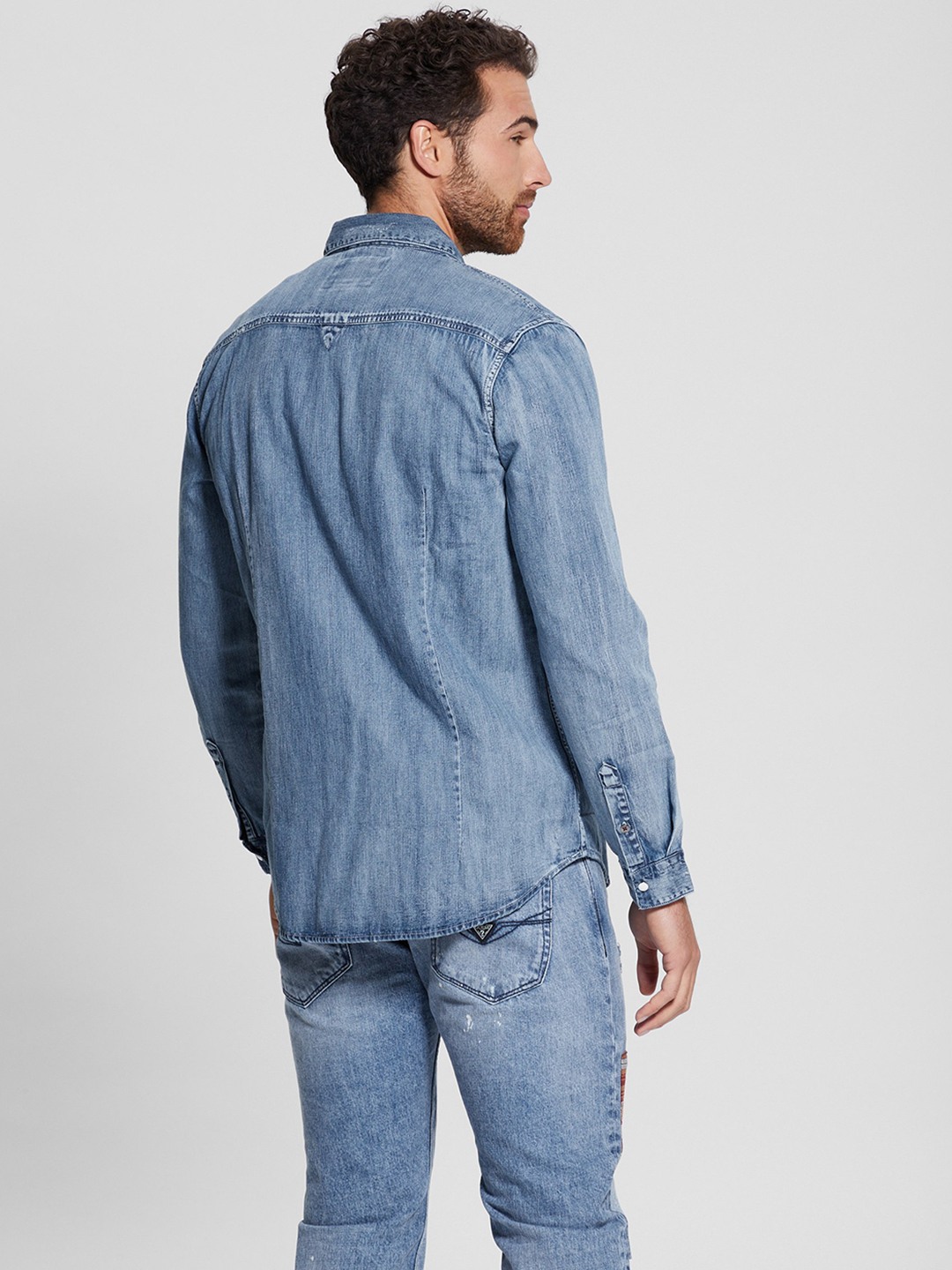 Blue Solid Spread Collar Full Sleeves Denim Shirt