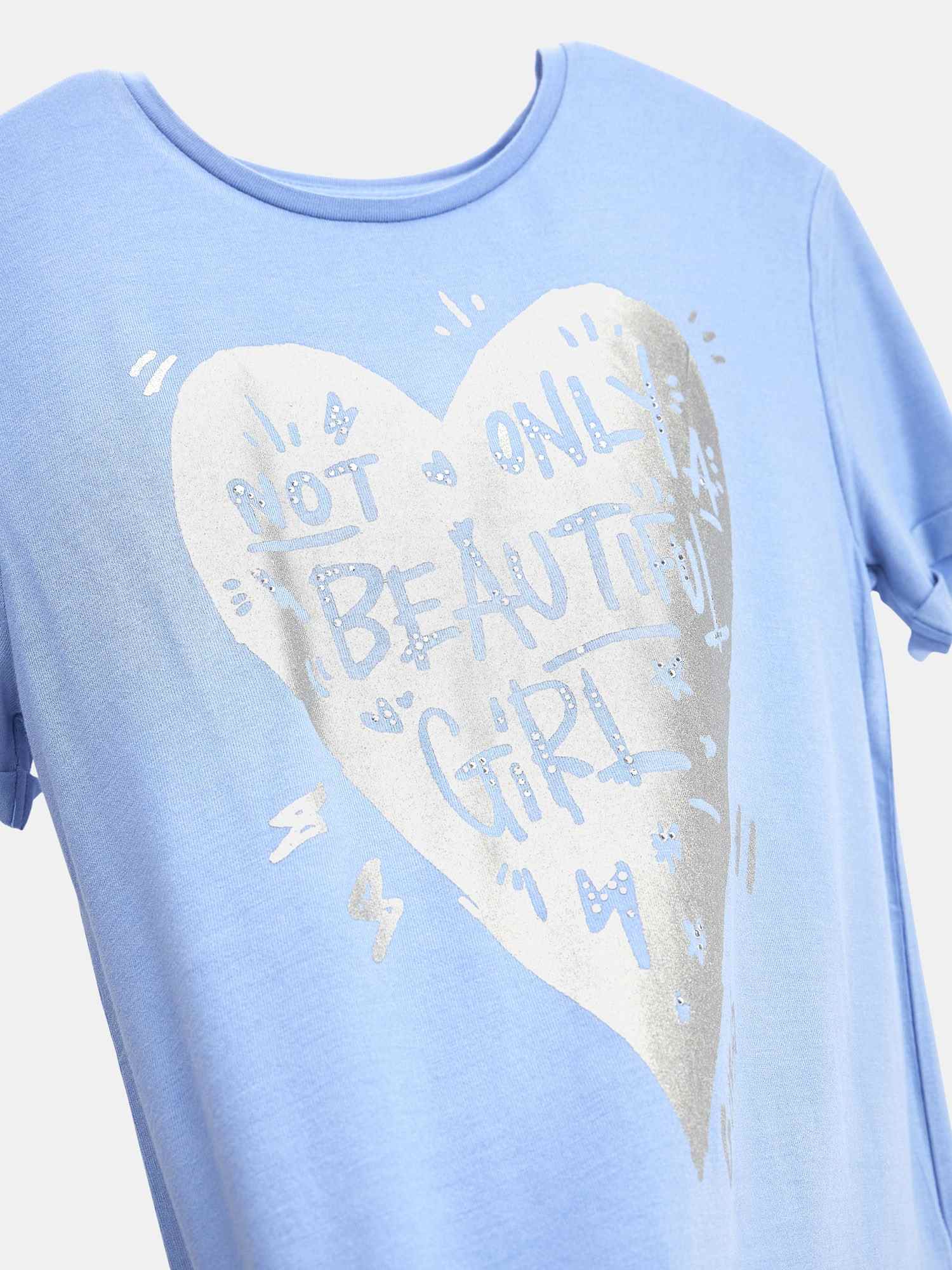 Blue Round Neck Short Sleeves Printed T-Shirt