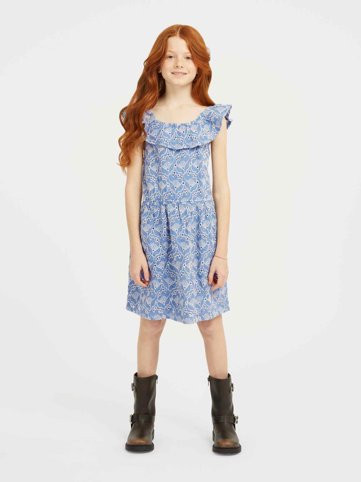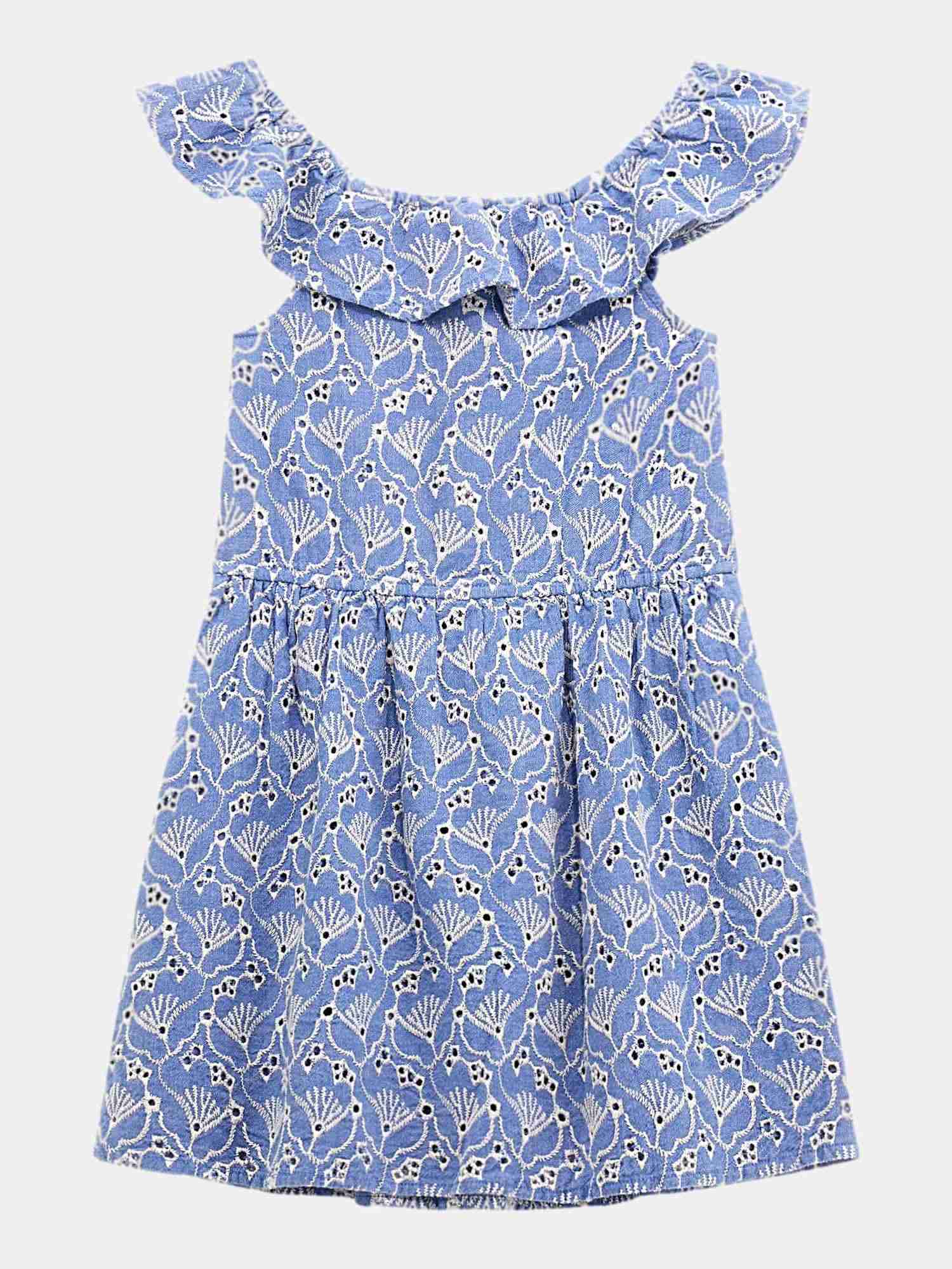 Blue Round Neck Sleeveless Embroidered A-Line Dress