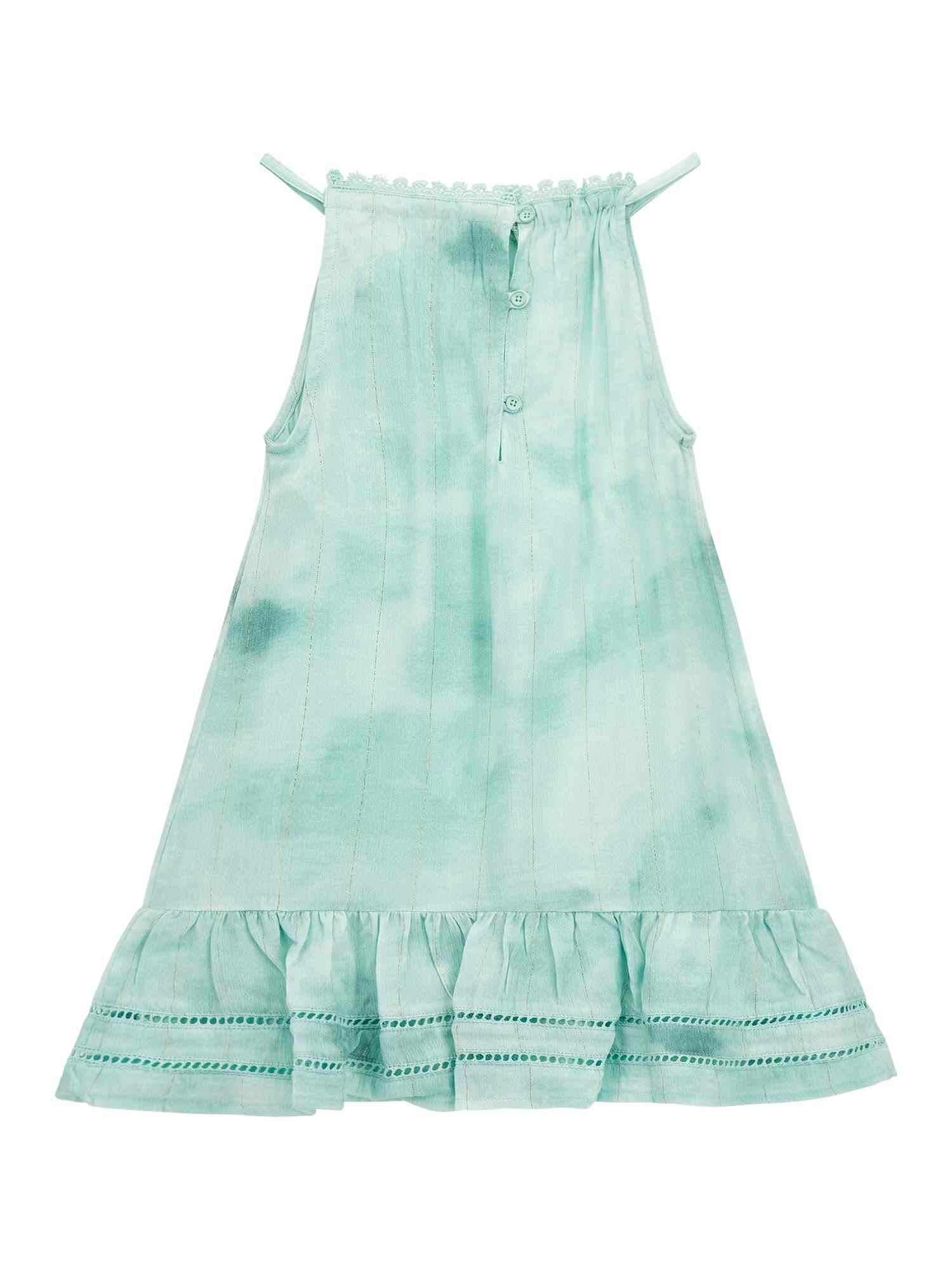 Blue Shoulder Strap Sleeveless Tie-Dye Tiered Dress