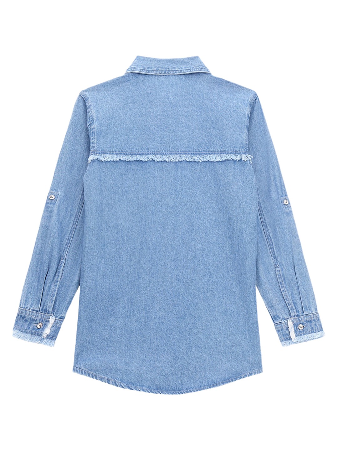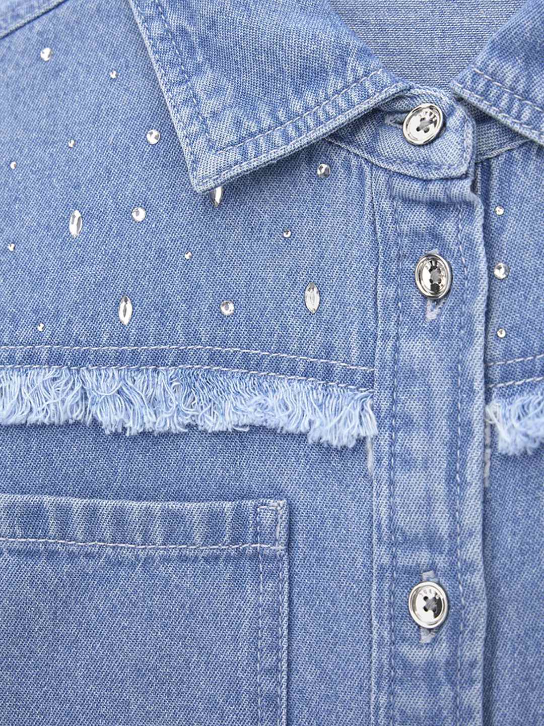 Blue Spread Collar Full Sleeves Embellished Shirt
