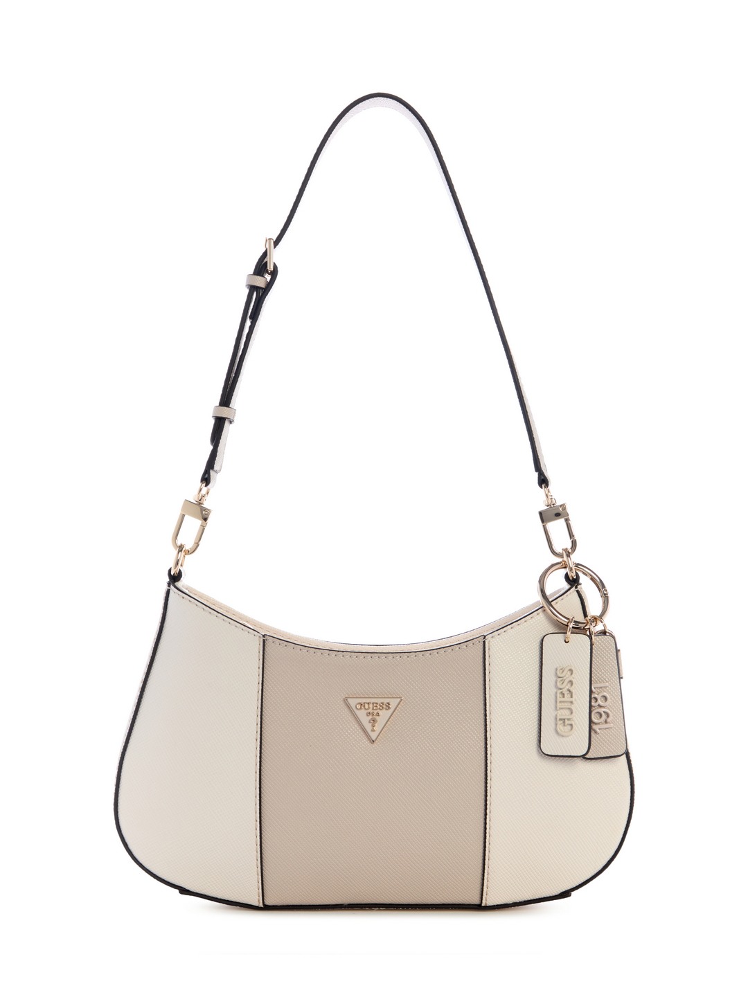 Guess Bone Textured Noelle Top Zip Shoulder Bag