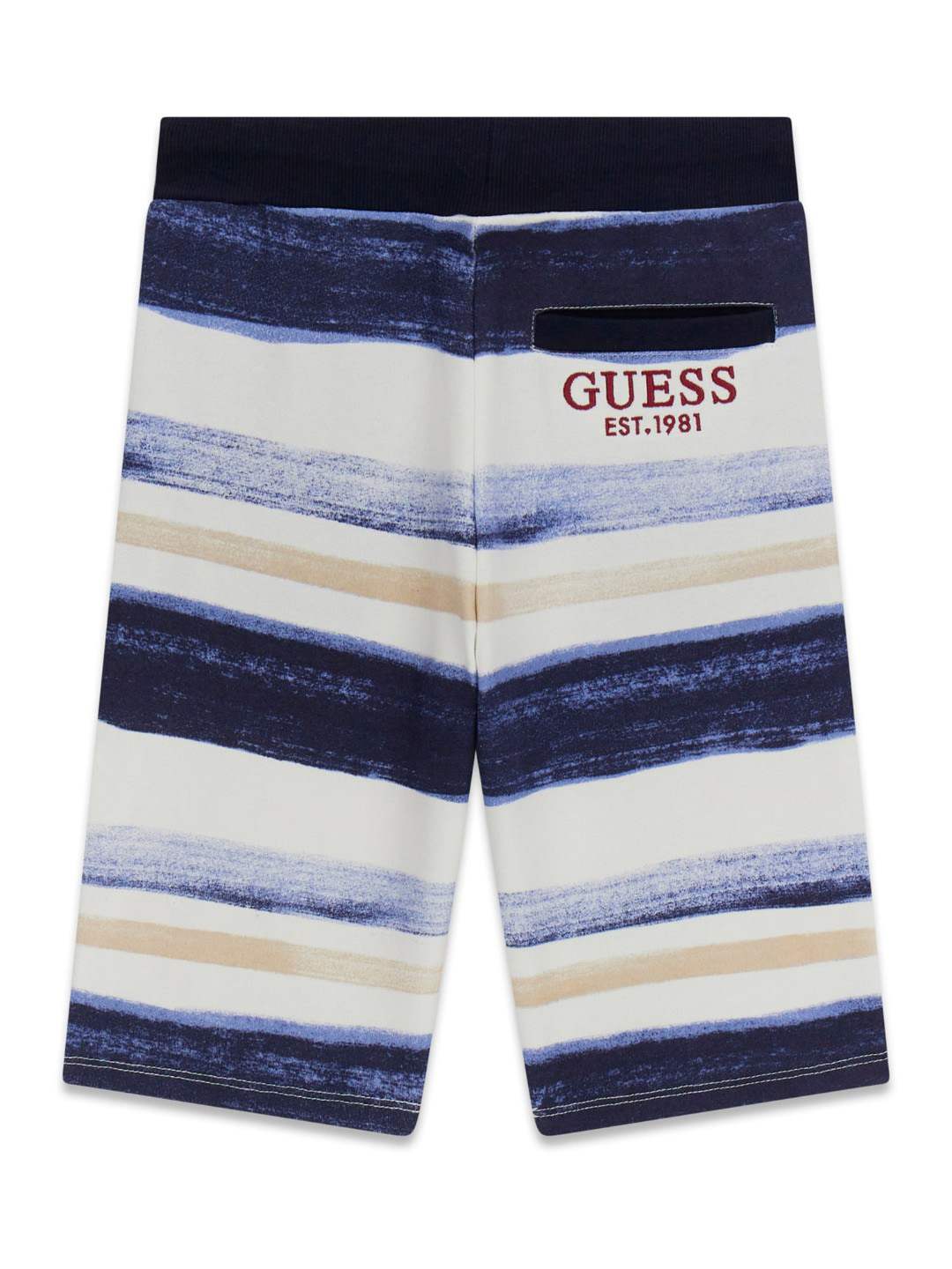 Elevate your little guy's style with our Guess Boys Multicolor Striped Relaxed Fit Mid Rise Shorts. These trendy shorts combine comfort with fashion, featuring a relaxed fit and mid-rise waist for all-day wear. The multicolor striped design adds a fun pop of color to his wardrobe, perfect for summer adventures or casual outings. Made from high-quality materials, these shorts are durable and easy to care for. Give your boy a stylish edge with these versatile shorts that offer both comfort and style in one package.
