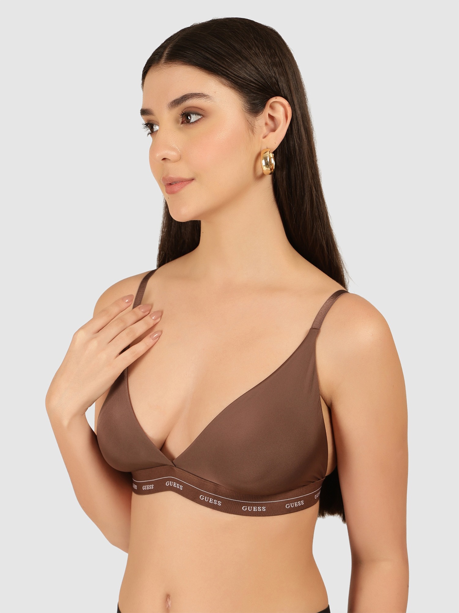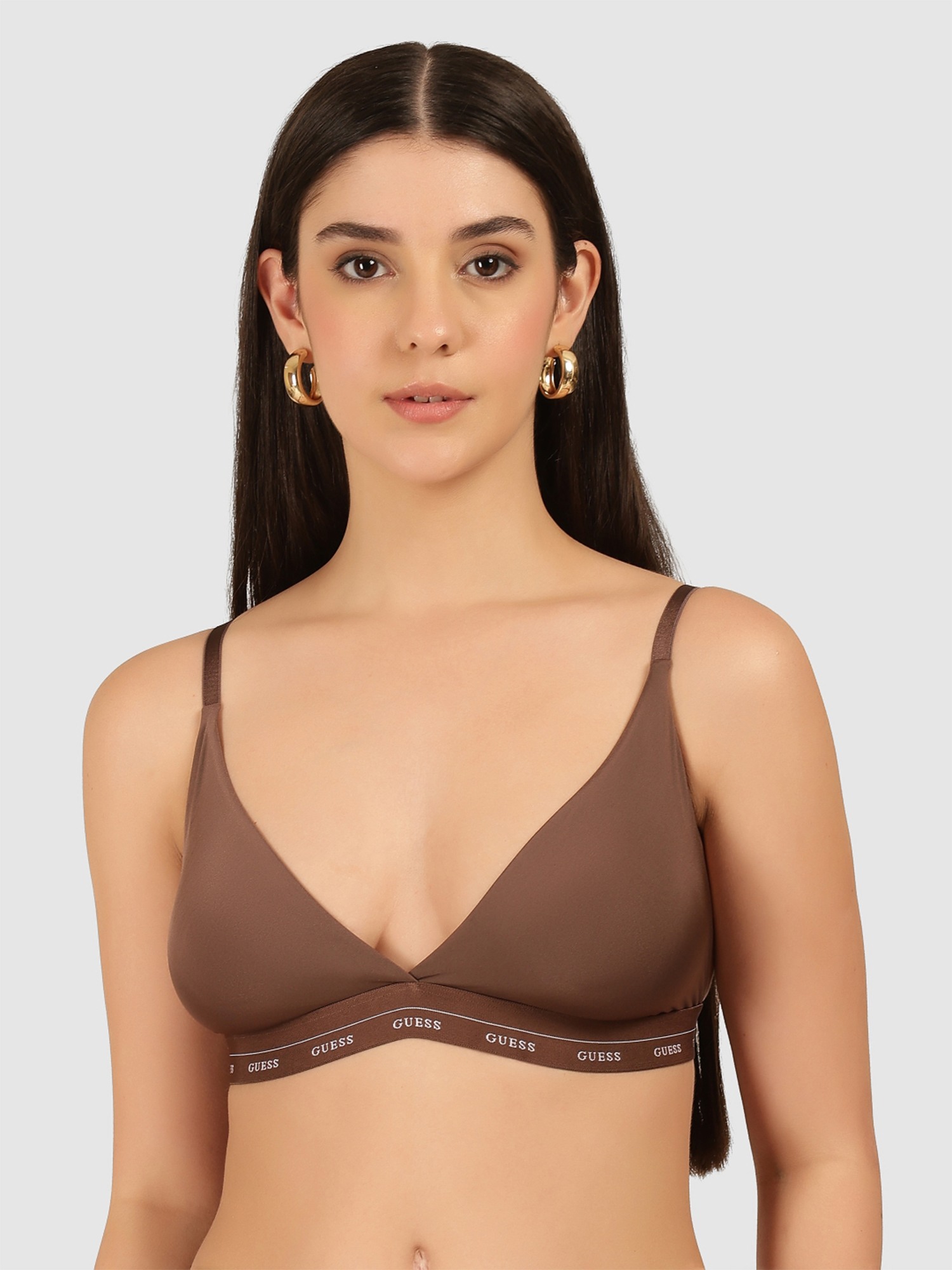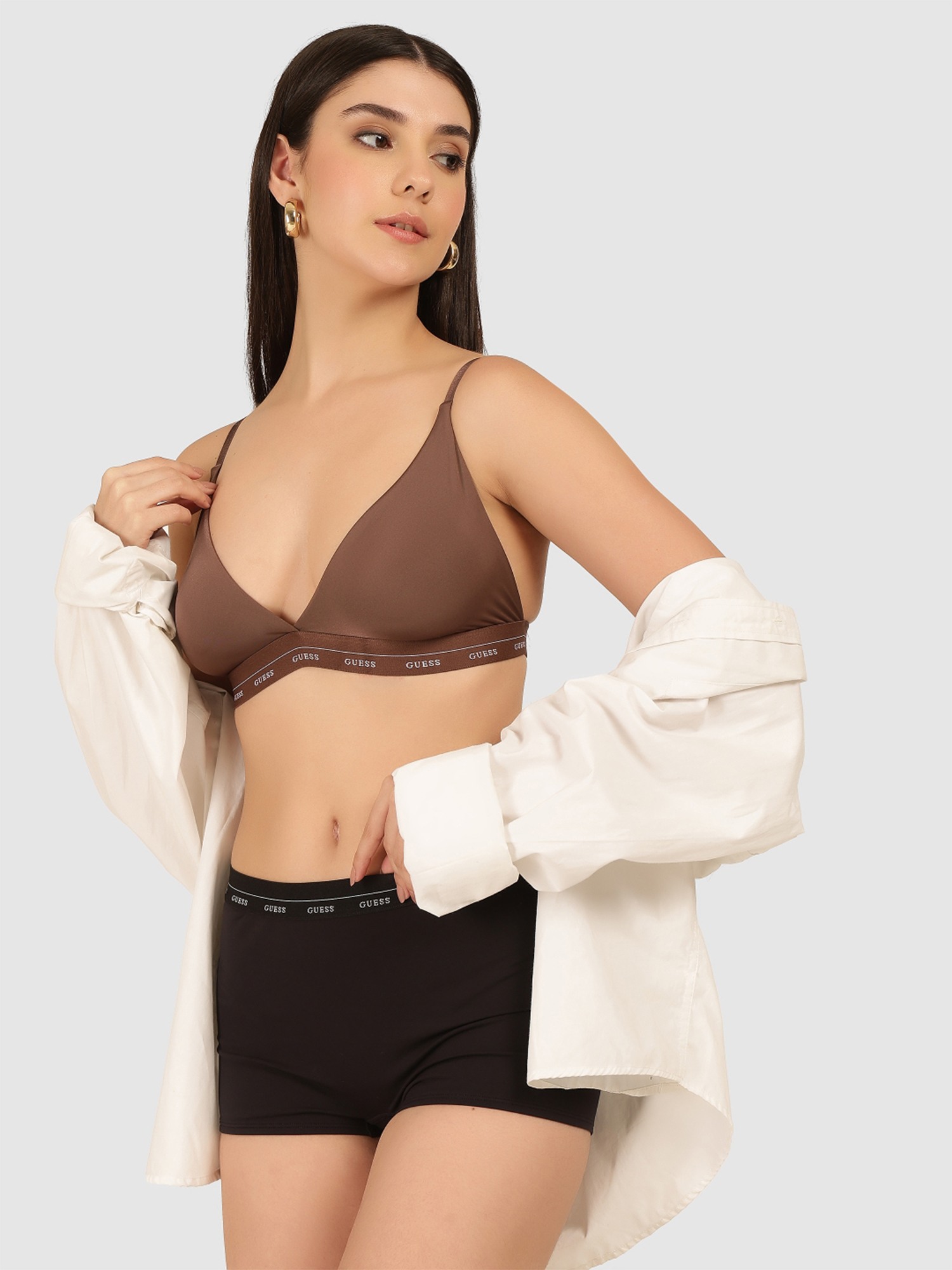 Guess Brown Cotton Solid/Plain Women Pushup Bra