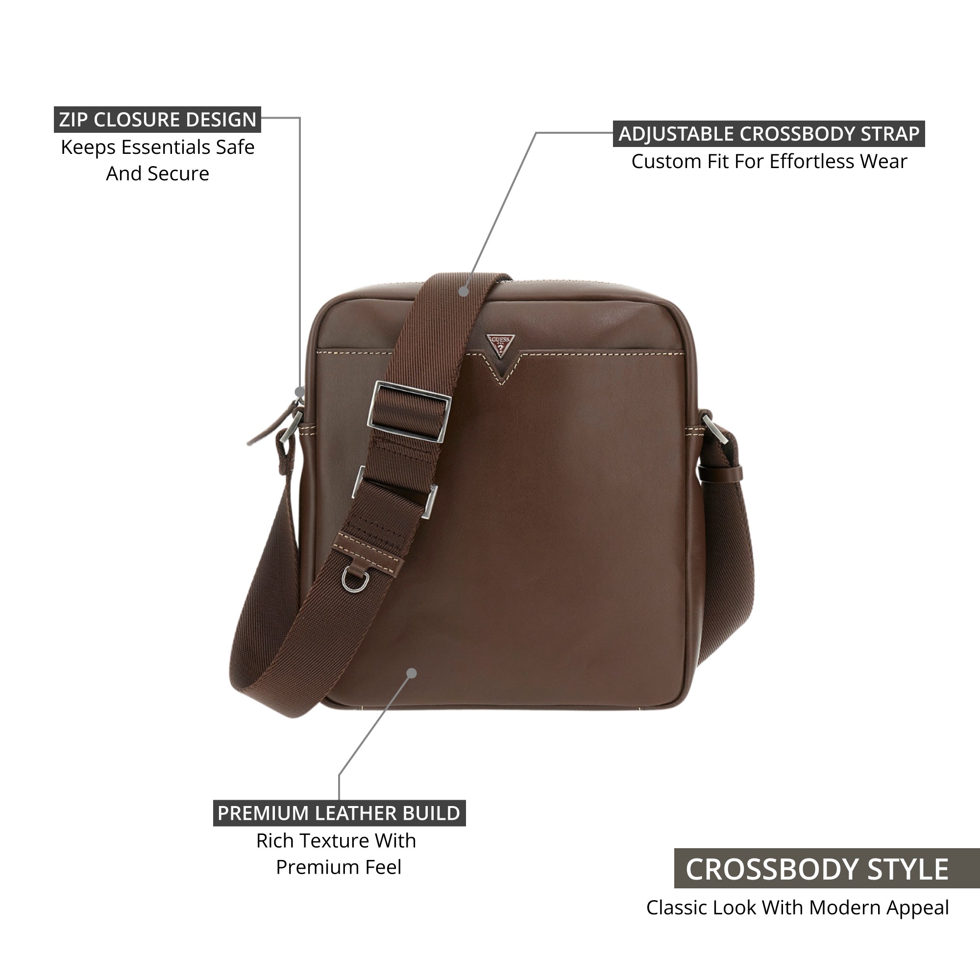 Elevate your everyday style with the Guess Brown Leather Solid Men Sling Bag. This sophisticated accessory is expertly crafted from high-quality leather, offering a rich solid brown finish that exudes timeless elegance. Designed for the modern man, it features a compact yet practical silhouette with a secure zip closure and an adjustable shoulder strap for a comfortable, hands-free experience. Whether you are commuting or traveling, this stylish sling bag provides the perfect blend of luxury and functionality to keep your essentials organized.
