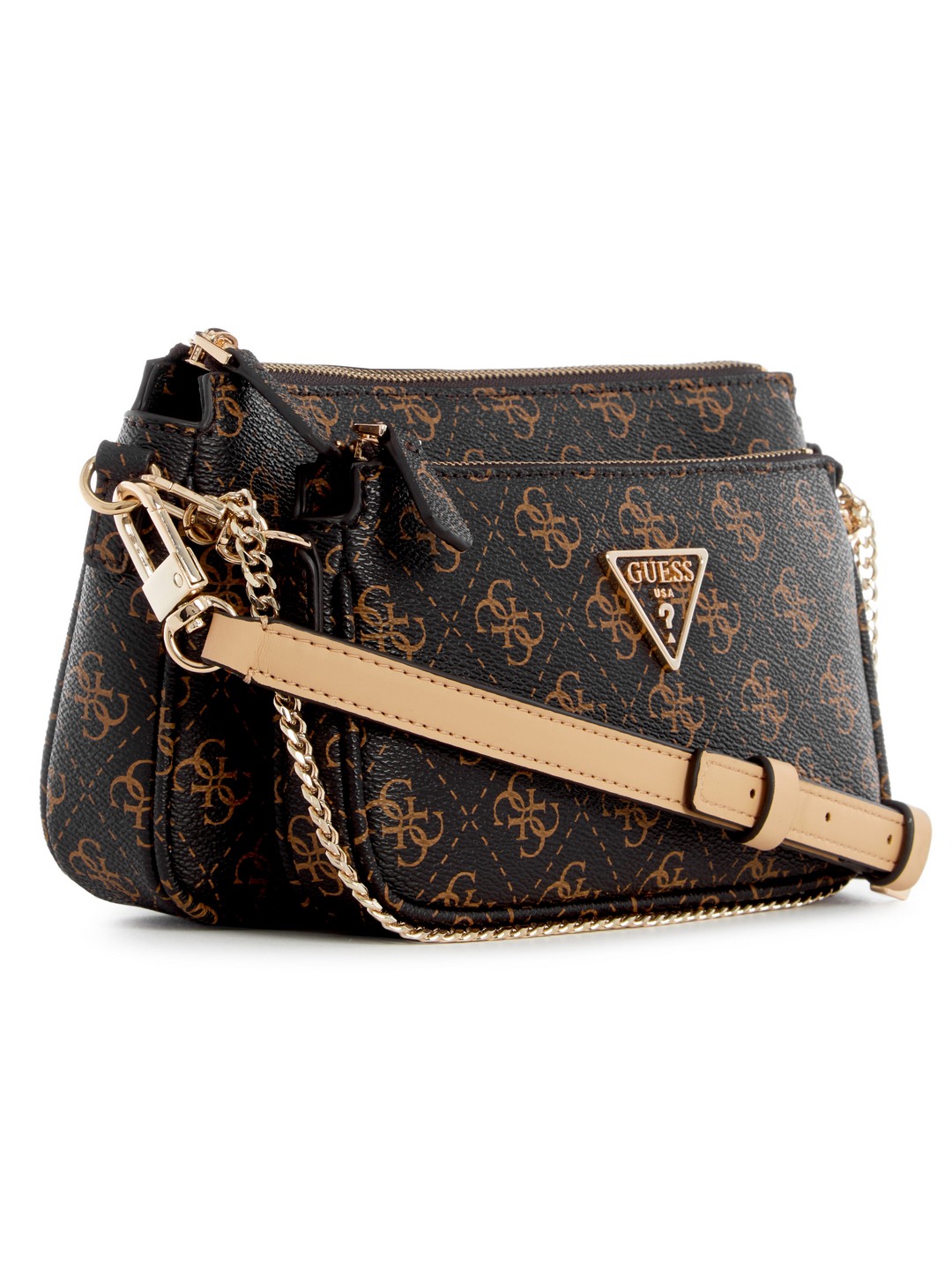 Guess Brown Logo Printed Noelle Pouch Crossbody Bag
