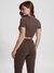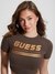 • Guess Women's Coffee Brown Polyamide Printed Regular Fit Round Neck Short Sleeve Crop Top