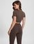 Women's Coffee Brown Polyamide Printed Regular Fit Round Neck Short Sleeve Crop Top