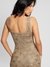 Beige Self Design Square Neck Sleeveless Bodycon Dress