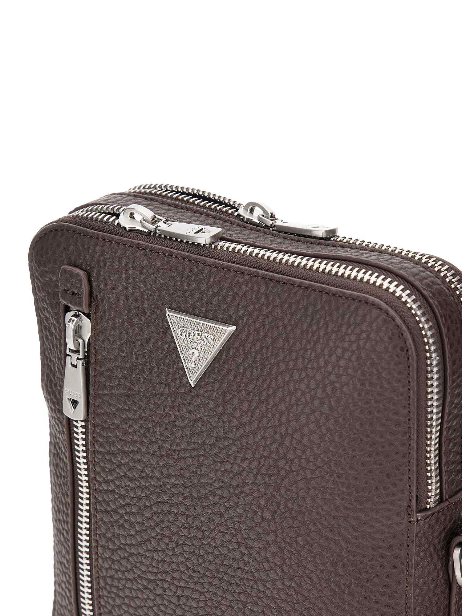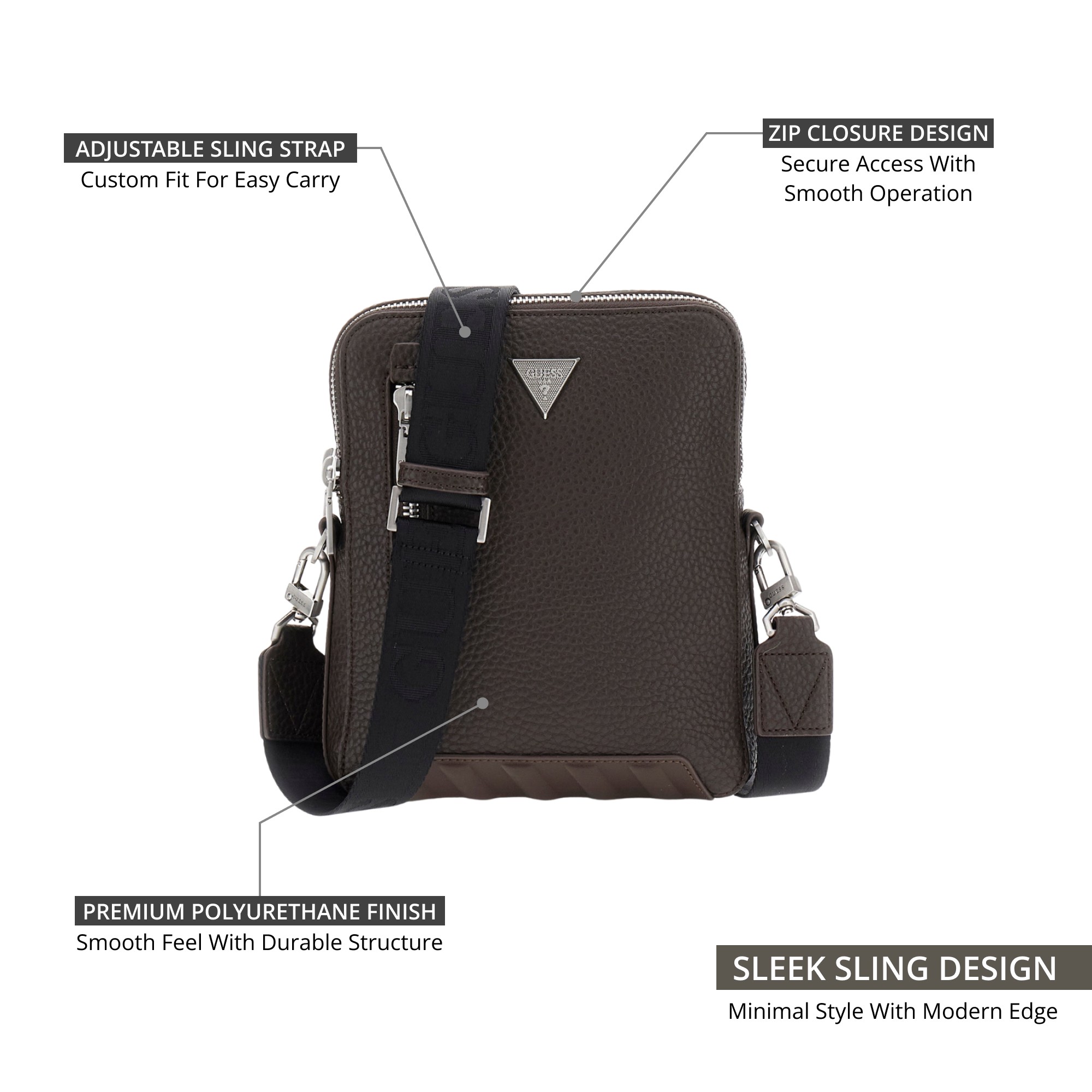 Elevate your daily style with the Guess Brown Polyurethane Solid Men Sling Bag. This sophisticated accessory is expertly crafted from high-quality polyurethane, featuring a rich brown finish and subtle branding for a polished look. Designed for practicality, it includes a secure zip closure, internal pockets, and an adjustable strap for a personalized fit. Whether you are traveling, heading to a business meeting, or enjoying a casual outing, this durable sling bag seamlessly blends fashion with functionality.