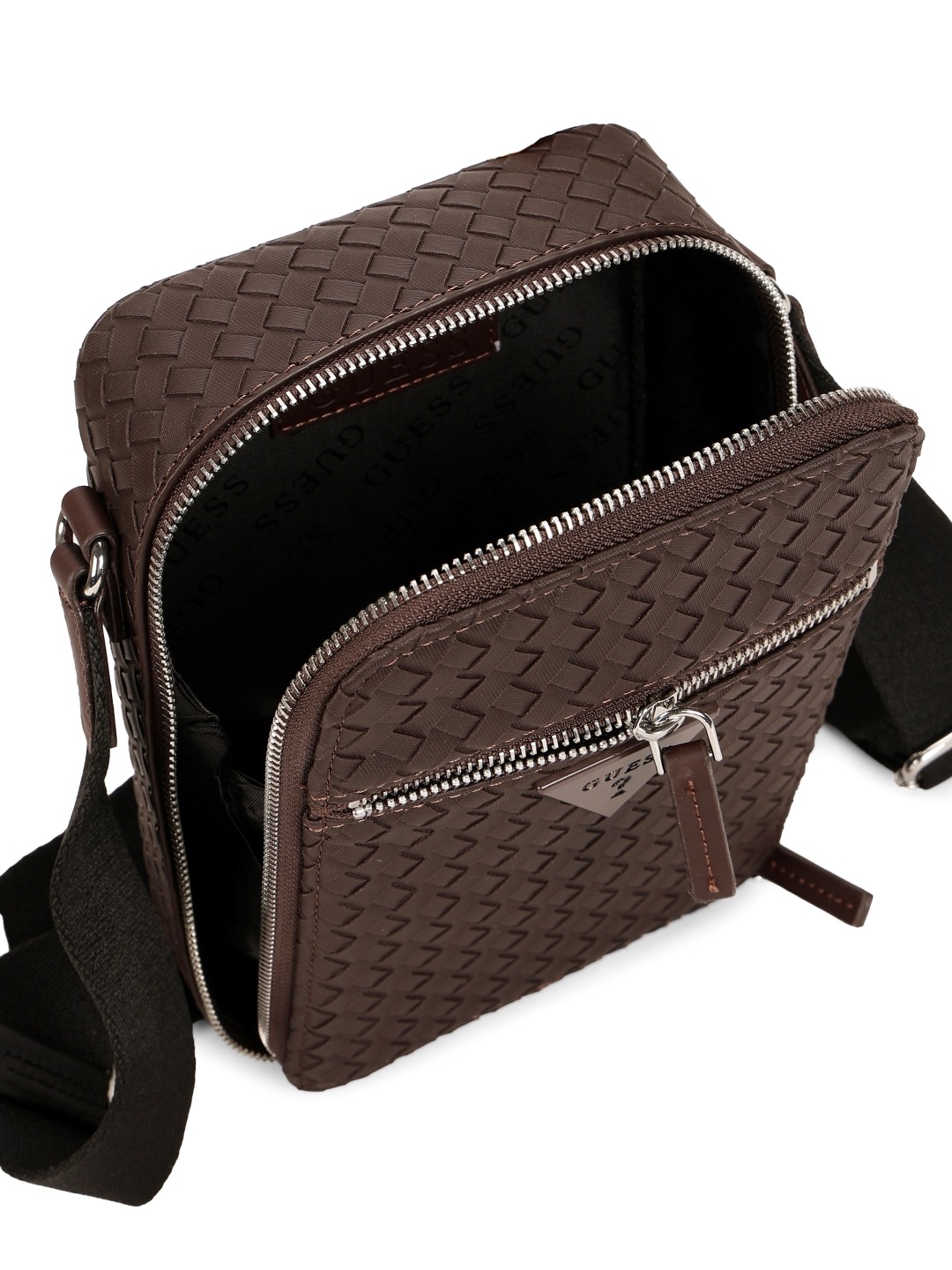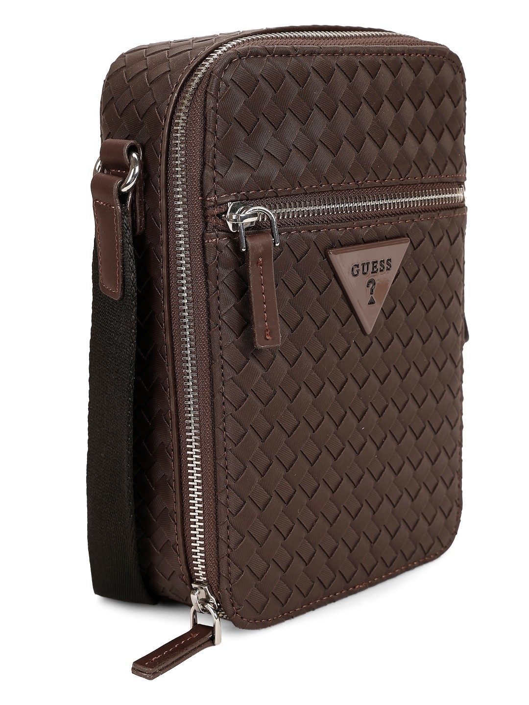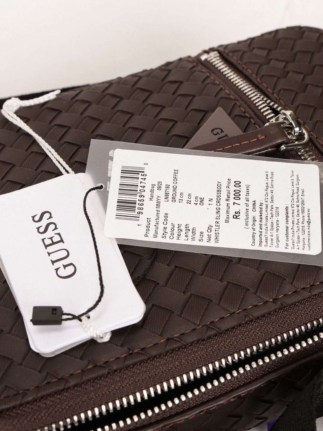 Elevate your style with the Guess Brown PVC Woven Design MEN Cross Body bag. This sleek and versatile accessory is designed for the modern man on the go. Crafted from high-quality PVC material, it offers durability and a sophisticated look. The adjustable crossbody strap ensures comfort and convenience, while the woven design adds a touch of texture and uniqueness to your outfit. Stay organized with multiple pockets to store your essentials. Perfect for everyday use or special occasions, this bag effortlessly combines fashion and functionality. Upgrade your accessory collection with the Guess Brown PVC Cross Body bag today.