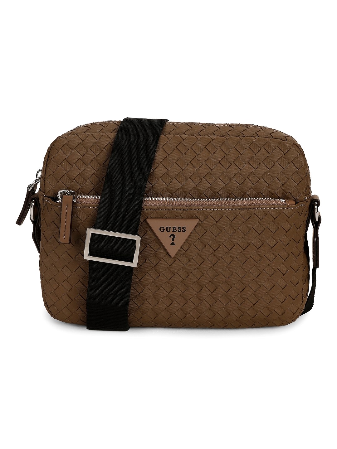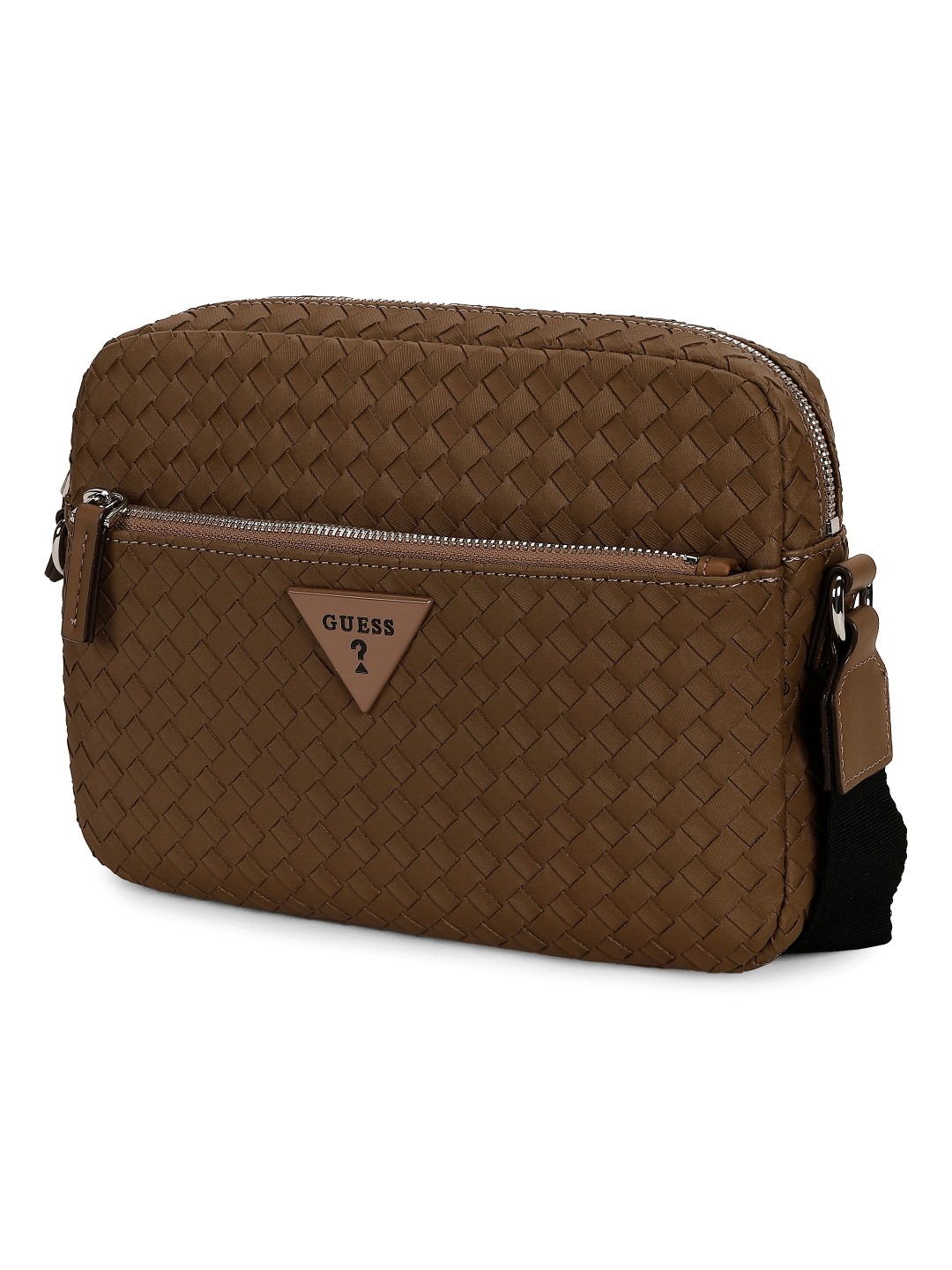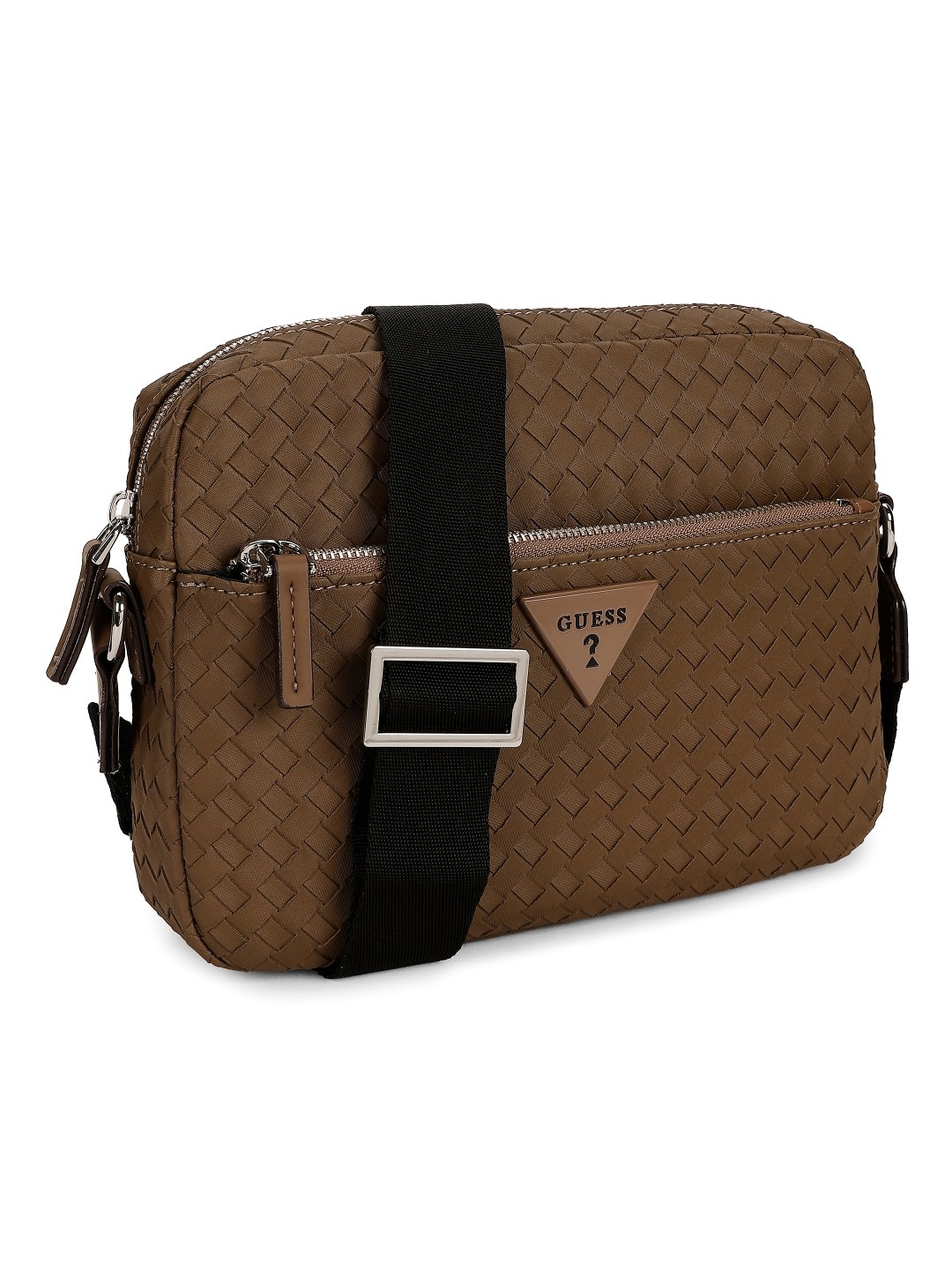 Elevate your style with the Guess Brown PVC Woven Design MEN Cross Body bag. Crafted with durable PVC material and a stylish woven design, this crossbody bag is perfect for on-the-go essentials. With an adjustable strap for a customized fit and multiple pockets for organization, this bag seamlessly blends fashion and function. Whether you are running errands or hitting the town, this sleek accessory is sure to turn heads. Upgrade your look with the Guess MEN Cross Body bag today.