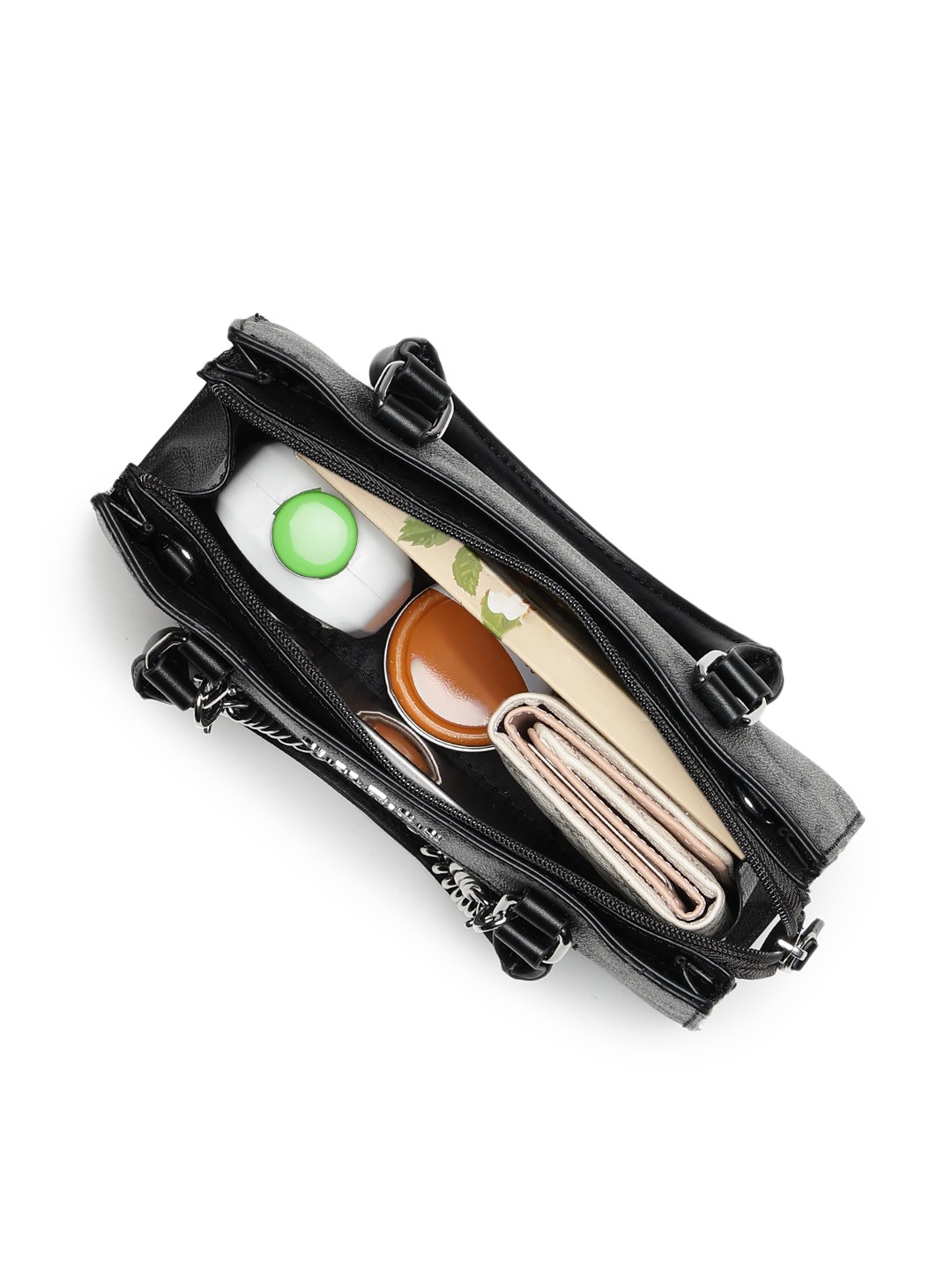 Discover the perfect blend of style and functionality with our Satchel in Charcoal Grey. Crafted from durable PVC fabric, this satchel is designed for the modern woman who values both fashion and practicality. The chic printed pattern adds a touch of elegance, making it a versatile accessory for any occasion. With ample space to organize your essentials, it features multiple compartments for easy access. The adjustable strap ensures comfort, while the sleek design complements any outfit. Elevate your everyday look with this sophisticated satchel.