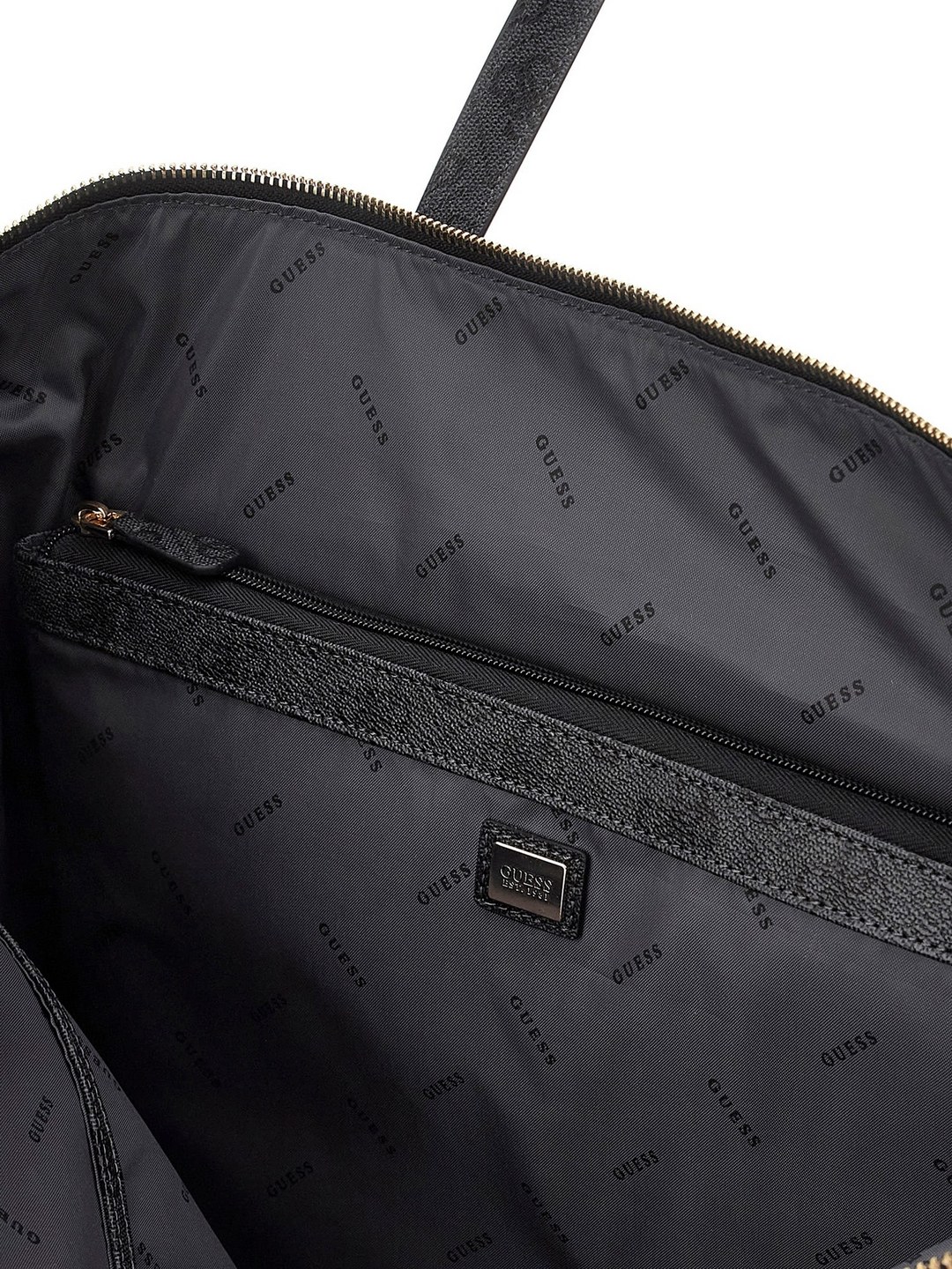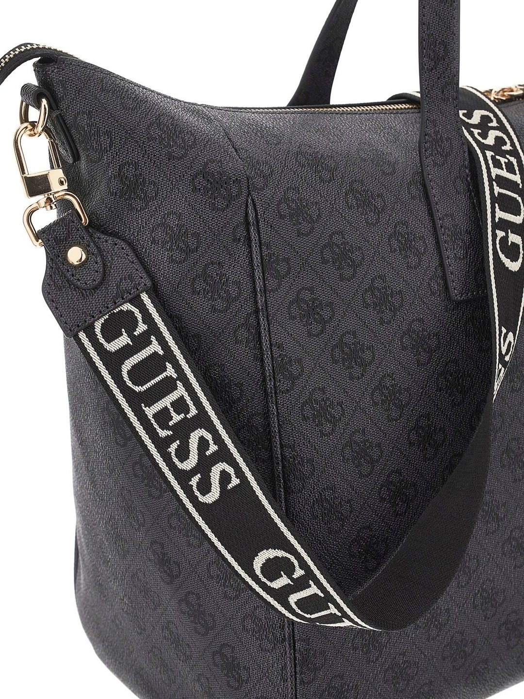 Guess Coal Logo Printed Latona Carry On Large Tote Bag