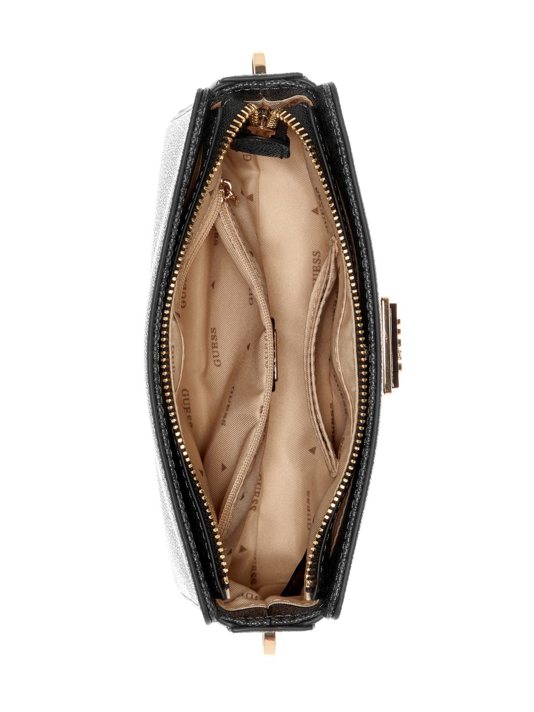 Guess Coal Logo Printed Meridian Top Zip Crossbody Bag