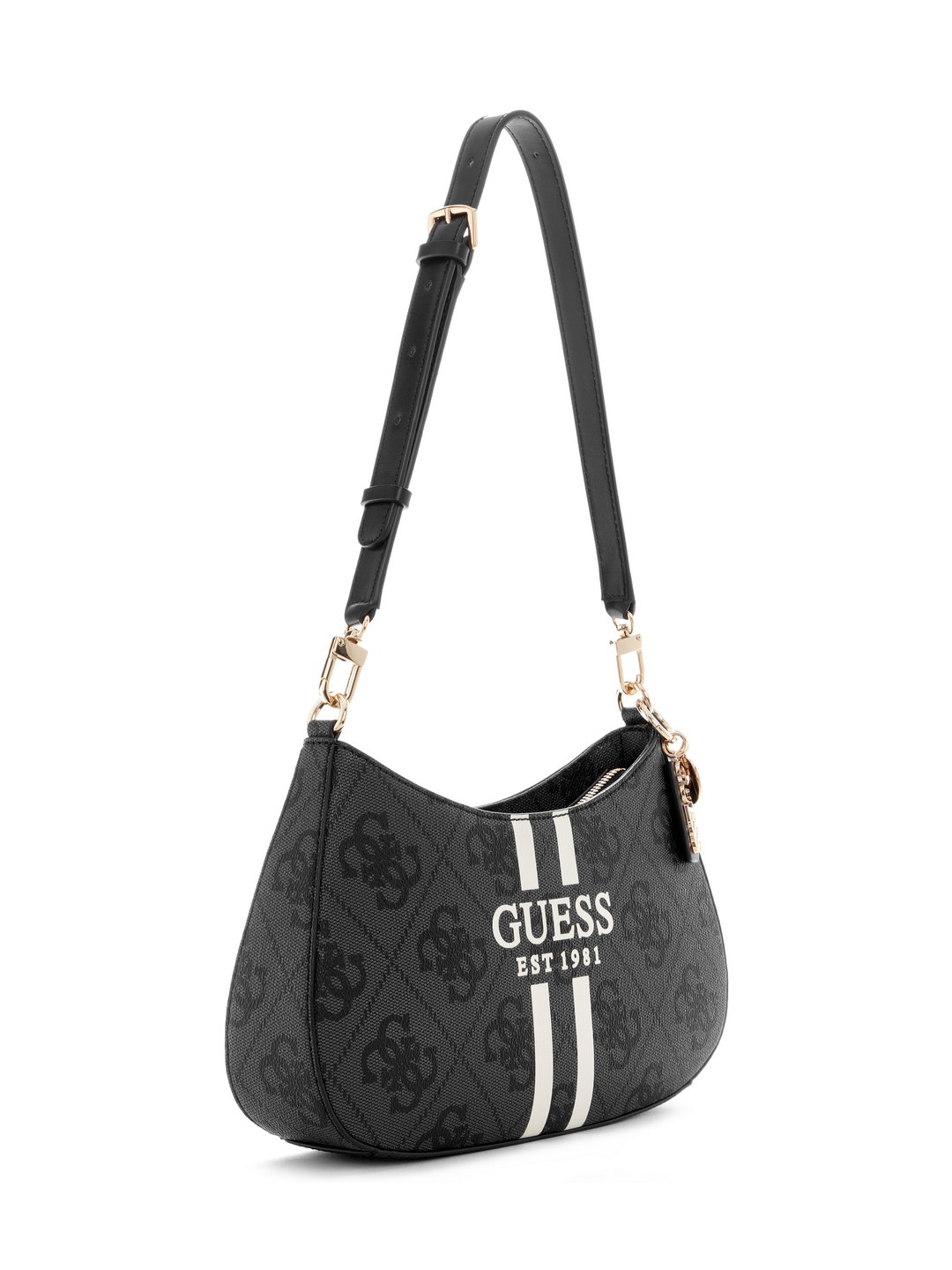 Guess Coal Logo Printed Noelle Top Zip Shoulder Bag