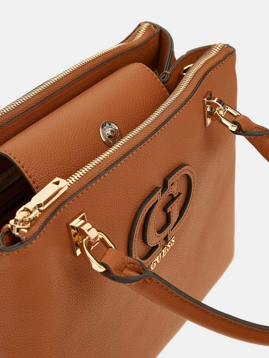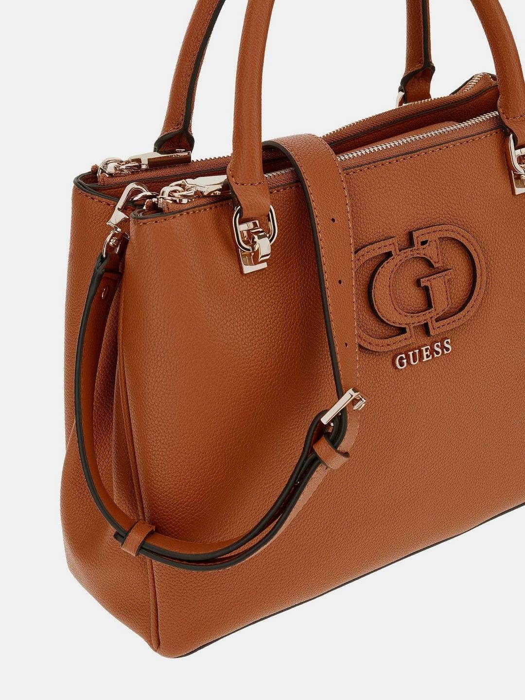 Guess Women Brown Textured Adjustable Detachable Strap Satchel Bag
